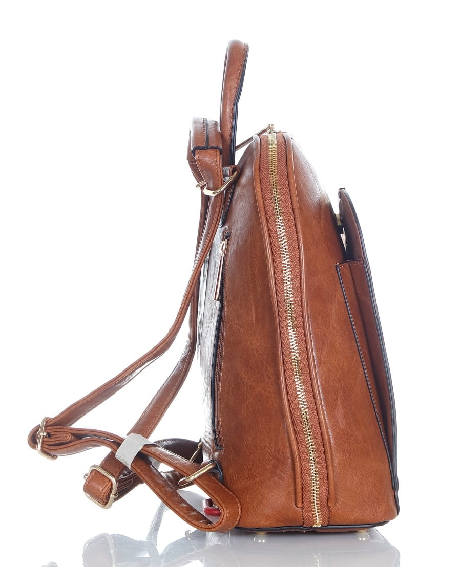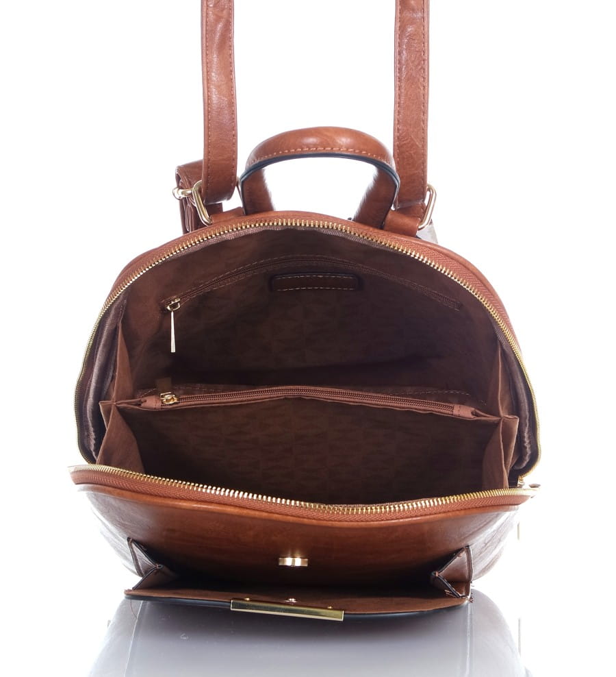 Pakowny i pojemny plecak damski z możliwością noszenia na jednym długim pasku - jak typową listonoszkę. Plecak wykonany został z wysokiej jakości skóry ekologicznej, wykończony mocną podszewką syntetyczną. Rozbudowany środek pozwala zachować porządek.