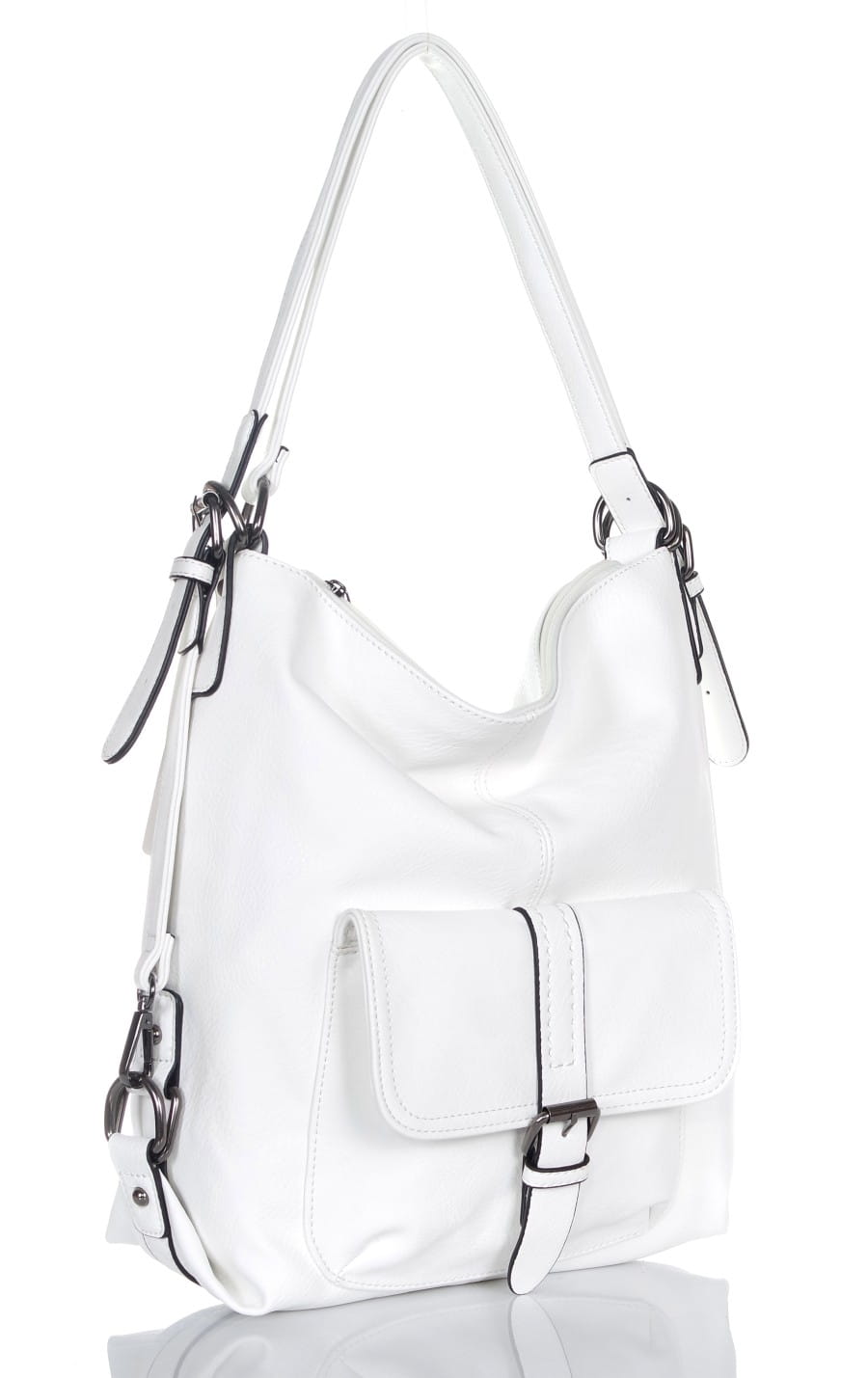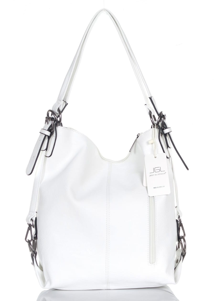 2W1 Torebka z funkcją plecaka! Torebkę można nosić standardowo na ramieniu na krótszym bądź dłuższym pasku (regulacja), lub na dwóch paskach jak klasyczny plecak.