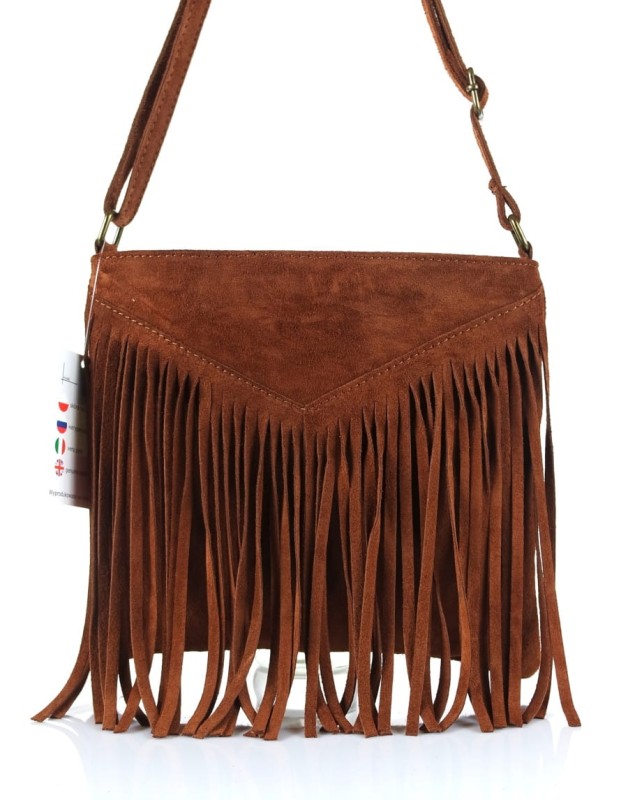 Niezwykle efektowna torebka damska wykonana z naturalnego włoskiego zamszu. Nowy model w sezonie 2014. Ozdobne frędzle sprawiają, że ciężko przejść obok tej torebki obojętnie.