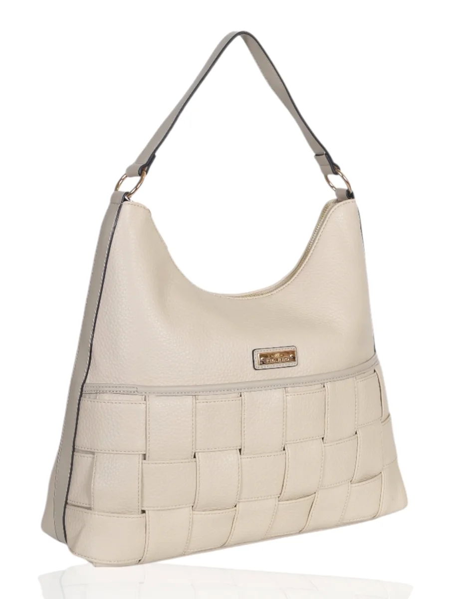 Stylowa, pakowna torebka damska na ramię wykonana z najwyższej jakości skóry ekologicznej o modnej fakturze, doskonale imitującej skórę naturalną. Świetnie wykonana ozdobna plecionka oraz delikatne logo producenta dodają torebce uroku. Praktyczne wnętrze wykończone mocną podszewką syntetyczną.