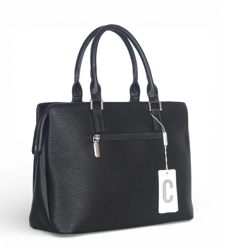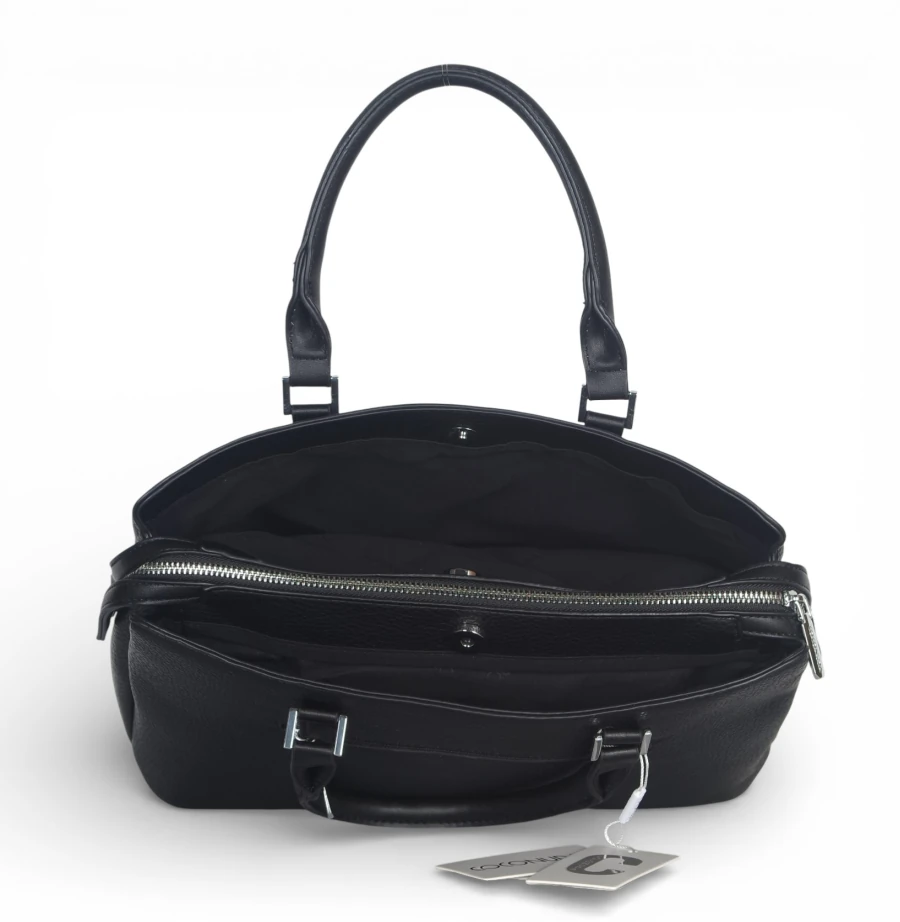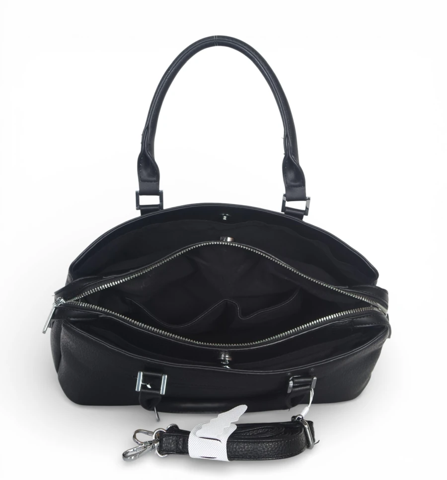 Klasyczny fason sprawia, że jest to idealna torebka elegancka damska pasująca do stylizacji formalnych, biurowych i smart casual. Dzięki trzem komorom model zapewnia świetną organizację – to pojemna torebka damska do pracy mieszcząca dokumenty A4 bez oprawy, notatnik, telefon oraz portfel.