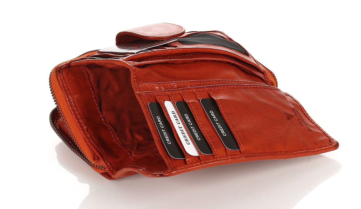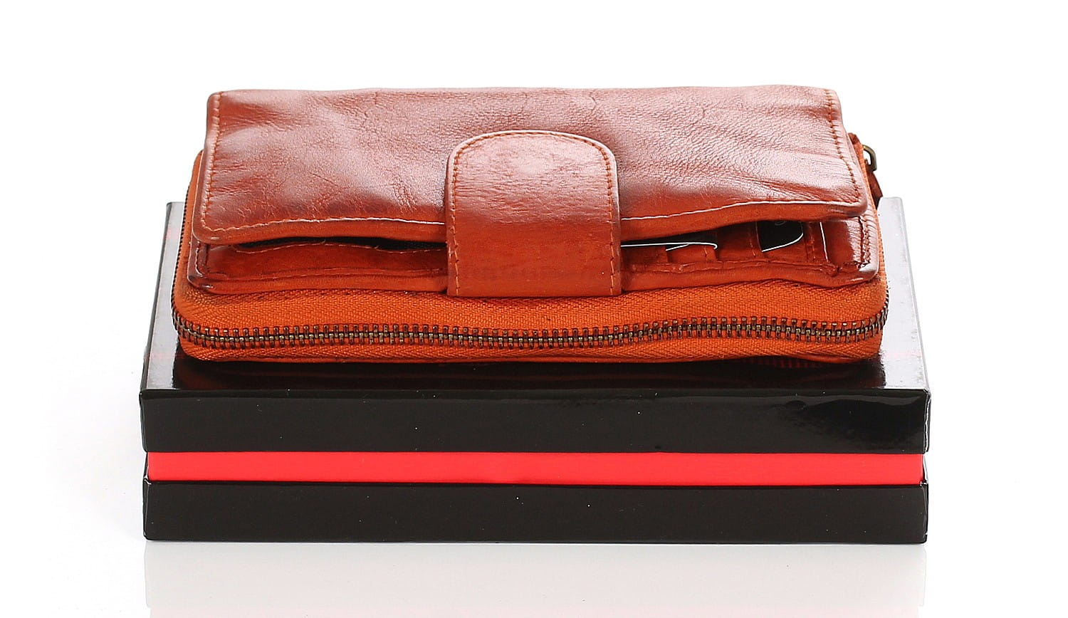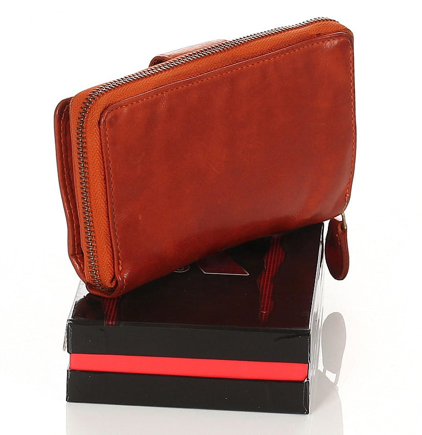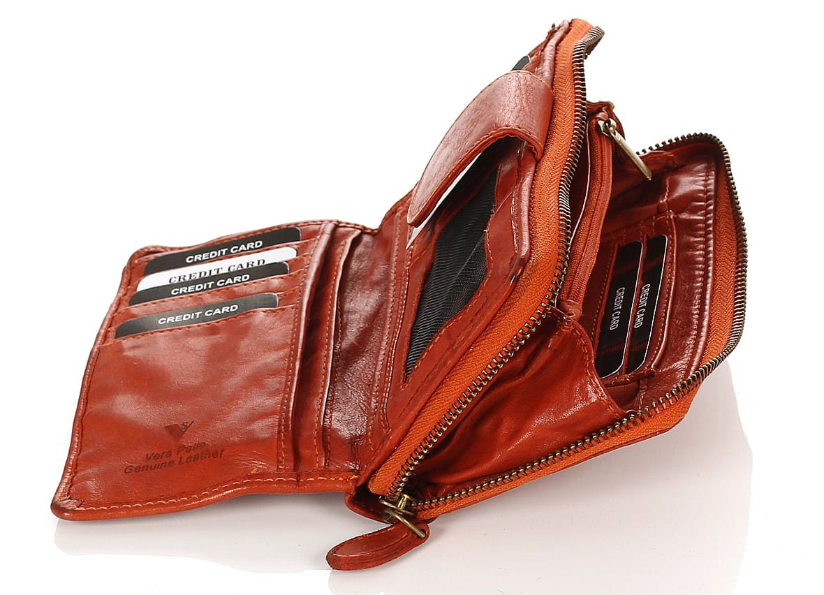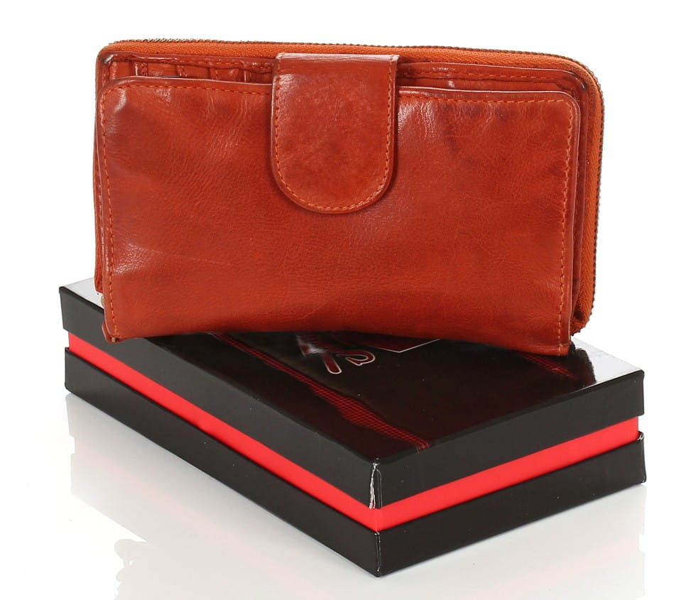 Cudowny skórzany portfel damski | Indyjska skóra | Rudy Rozbudowany