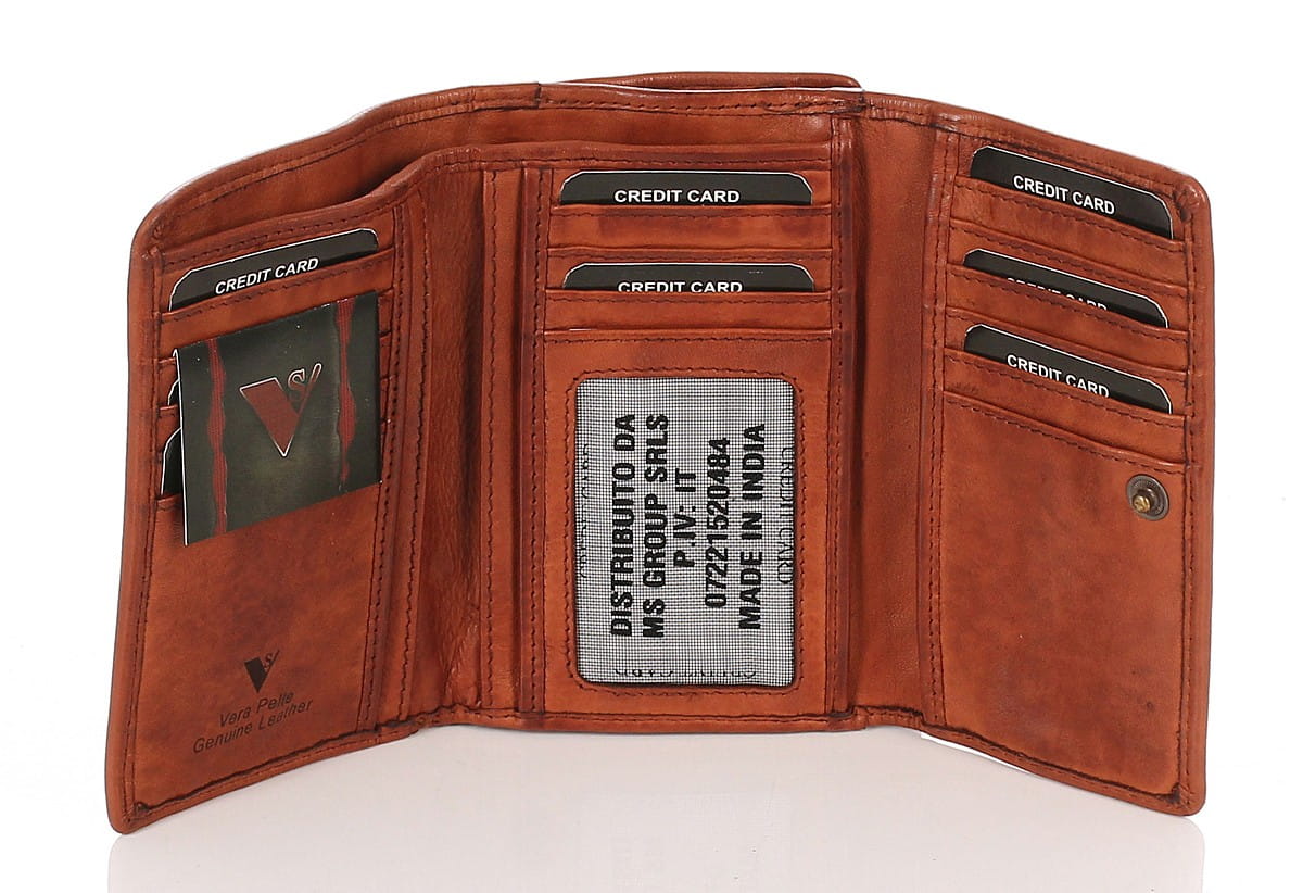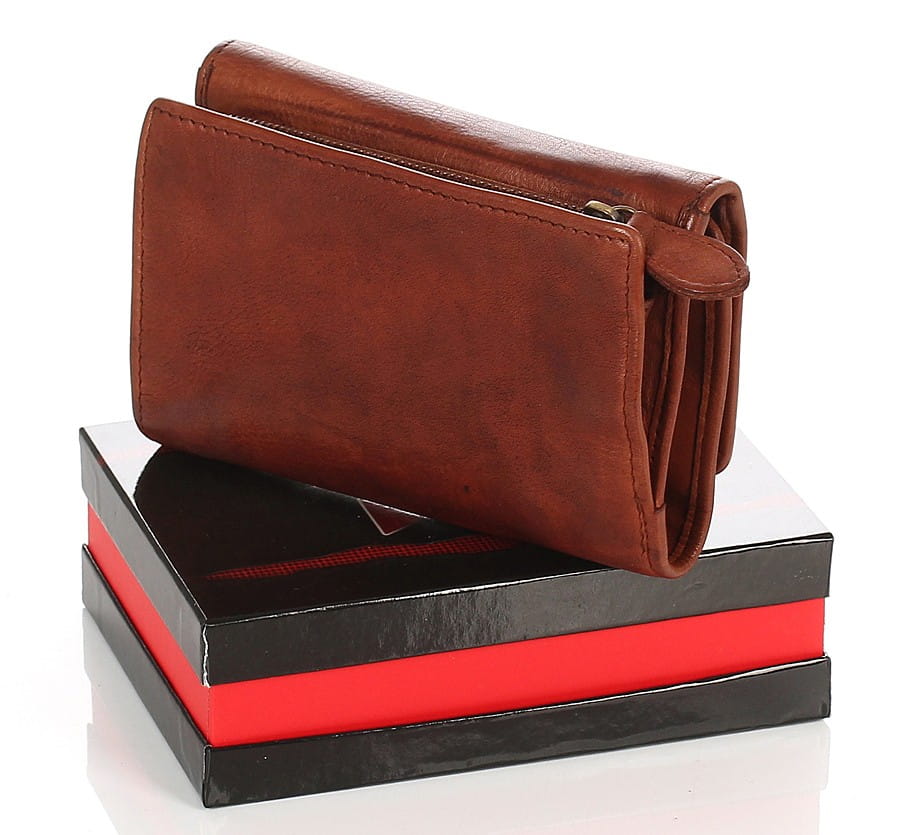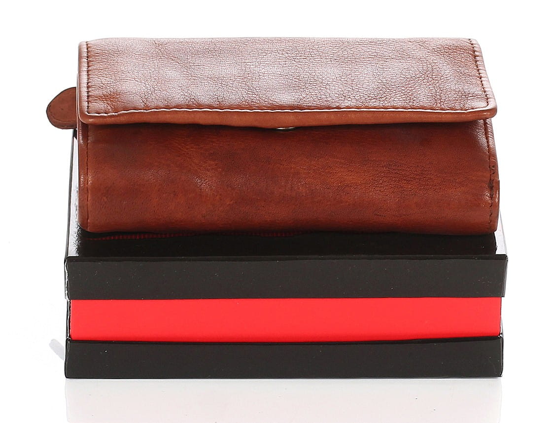 Cudowny skórzany portfel damski brązowy Indyjska skóra