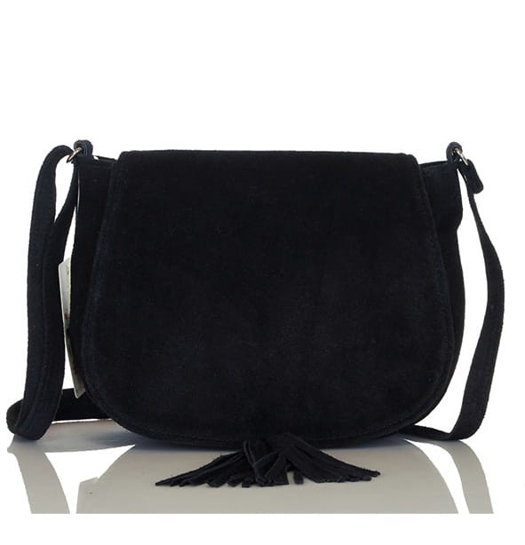 Czarna zamszowa listonoszka z frędzlem