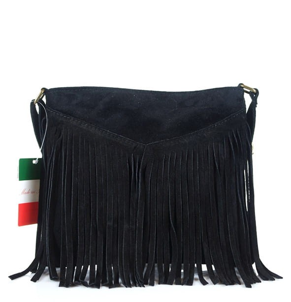 Czarna zamszowa torebka FRĘDZLE