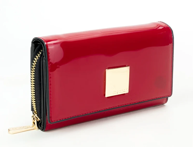 Średniej wielkości portfel damski wykonany z wysokiej jakości lakierowanej skóry naturalnej. Duże logo na froncie dodaje całości uroku. Rozbudowane wnętrze wykończone podszewką z logo producenta. Jeden z najbardziej praktycznych portfeli w bieżącej kolekcji.