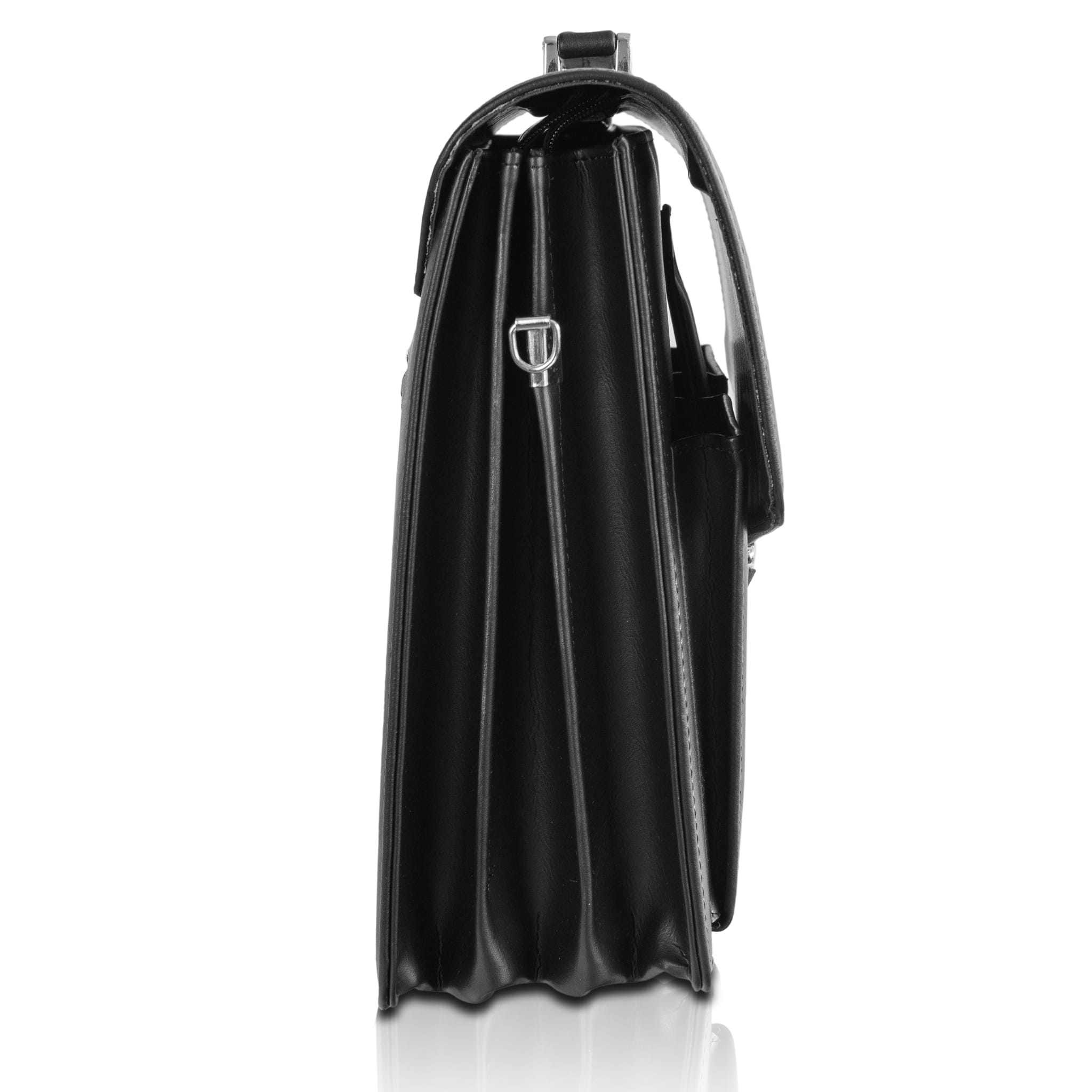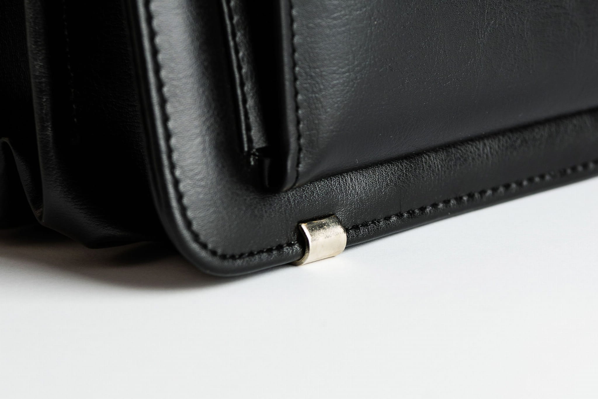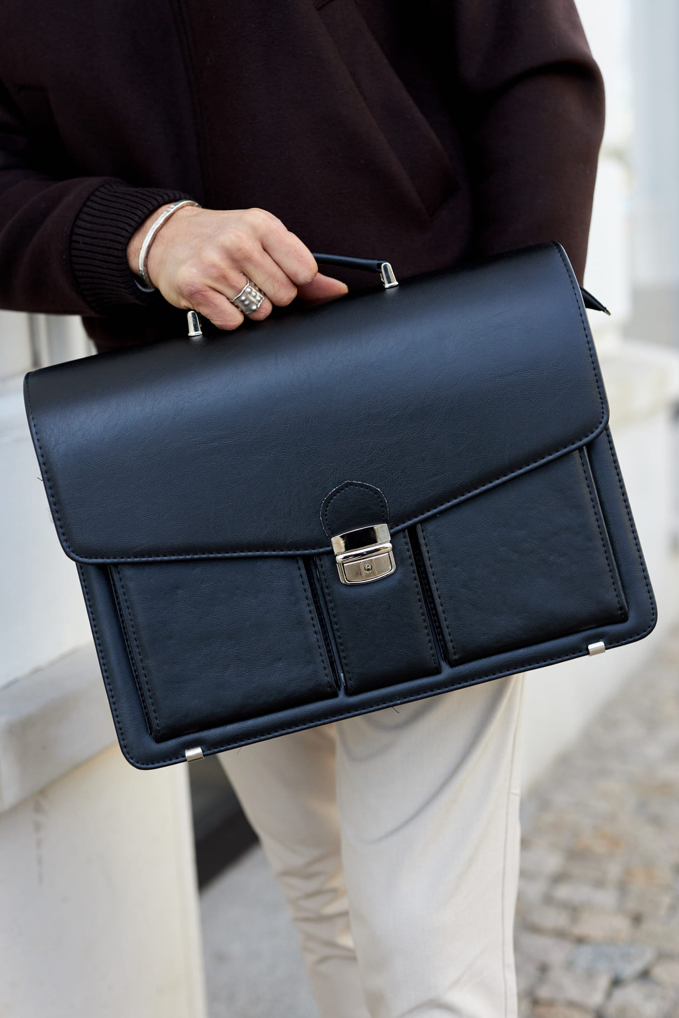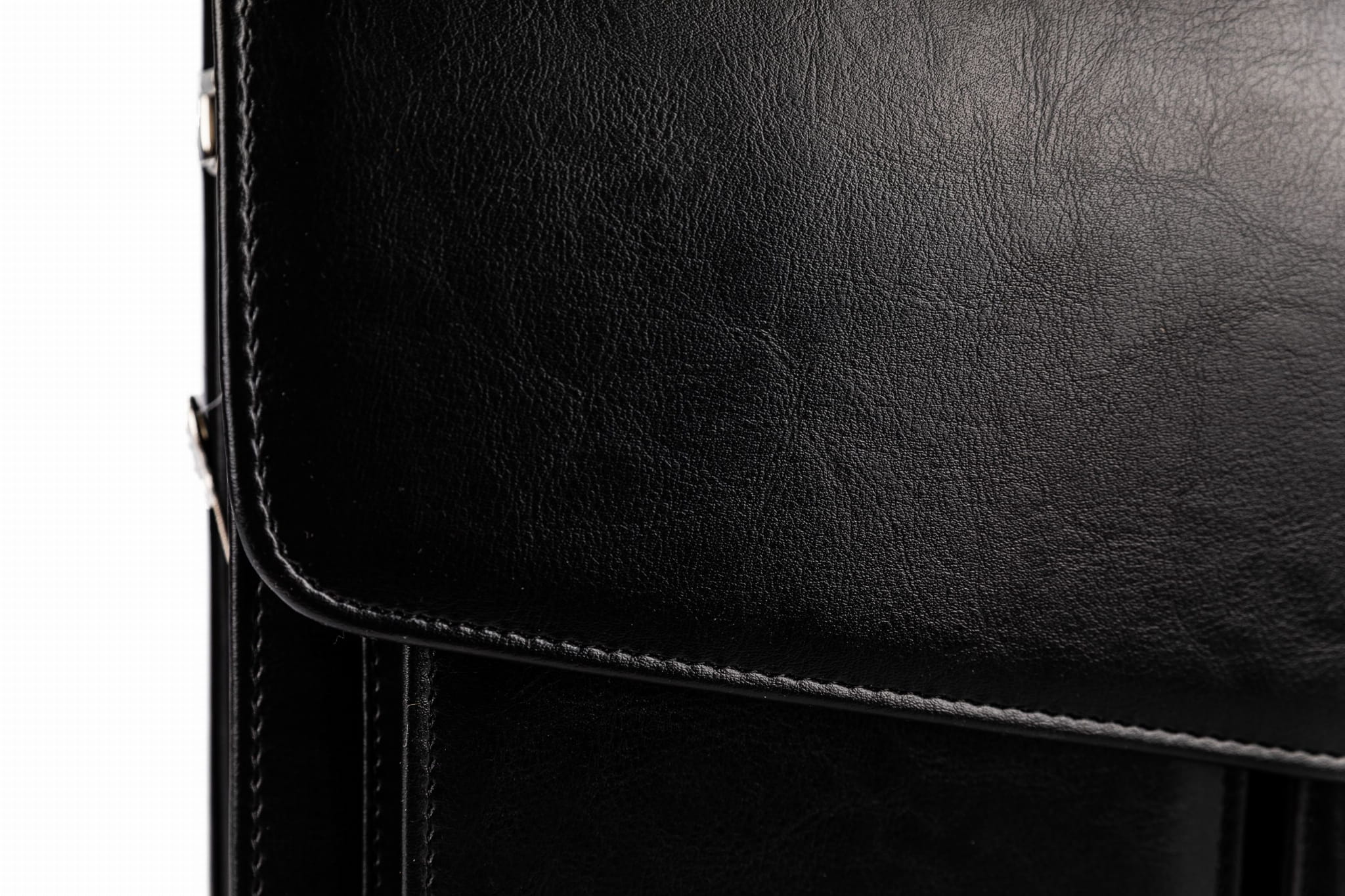 Zastosowana skóra ekologiczna cechuje się wysoką odpornością na uszkodzenia mechaniczne oraz zmienne warunki pogodowe. Sztywna konstrukcja chroni dokumenty przed pognieceniem, a metalowe stopki na spodzie zabezpieczają dno przed otarciami. To inwestycja w komfort i nienaganny wygląd na długi czas.
