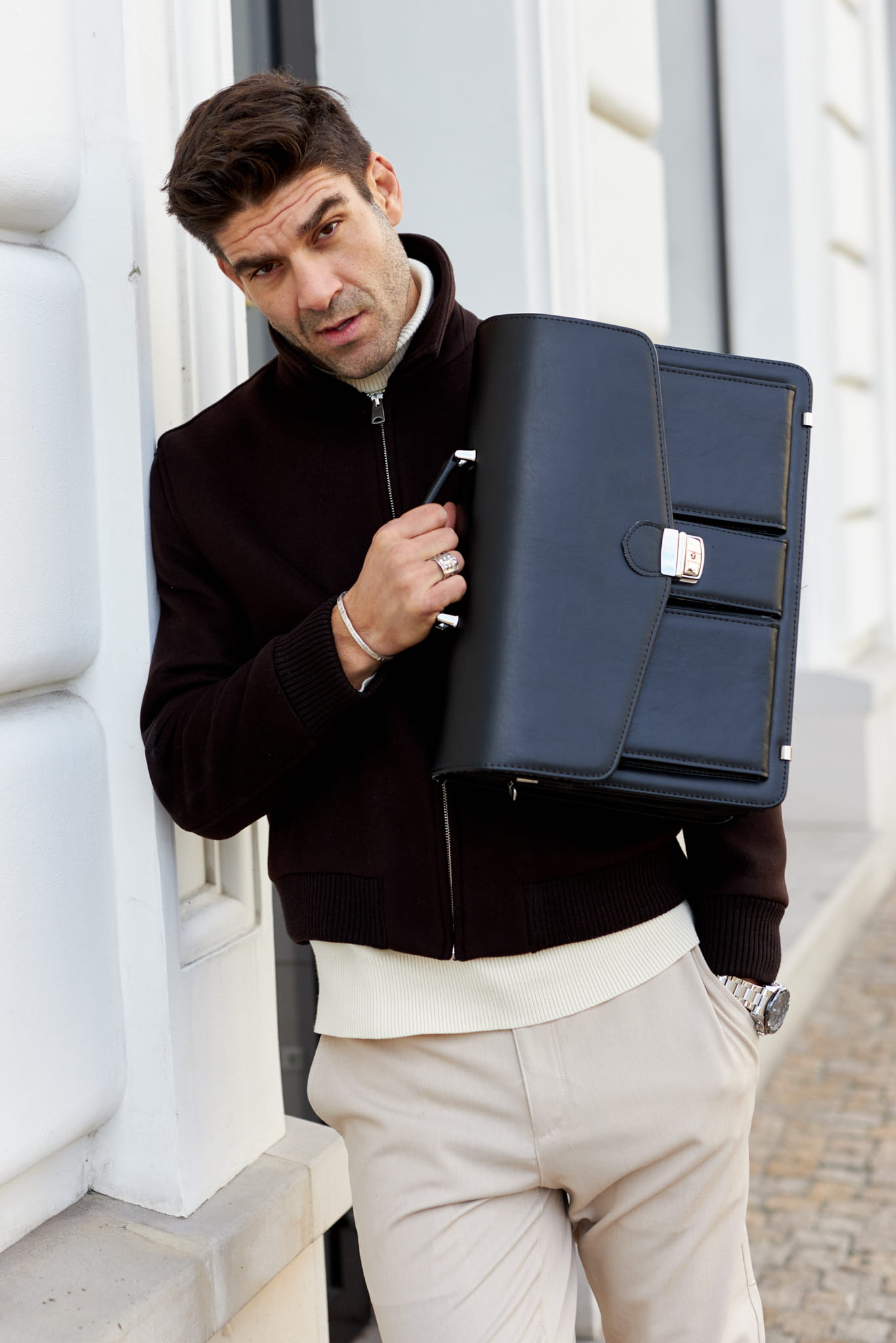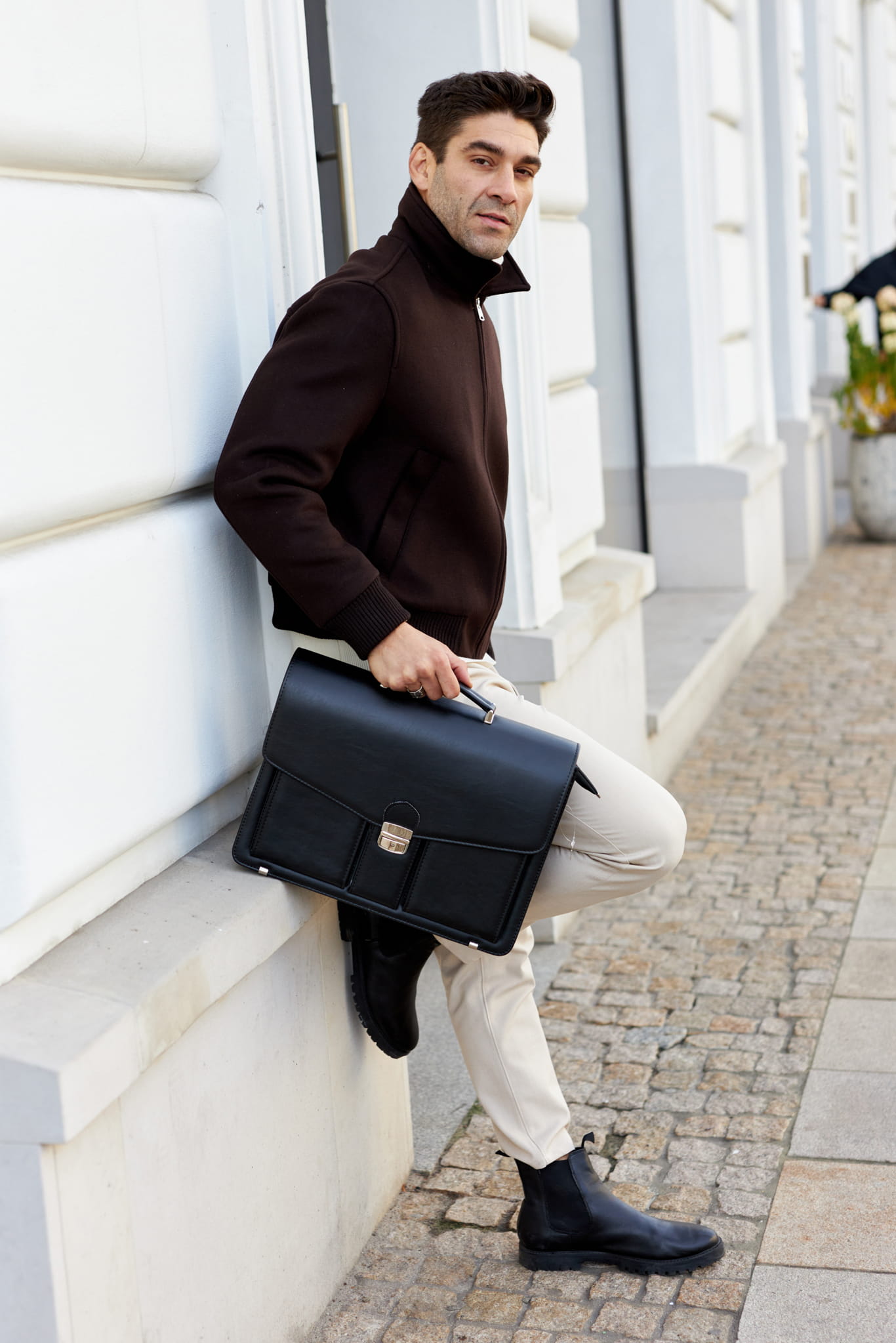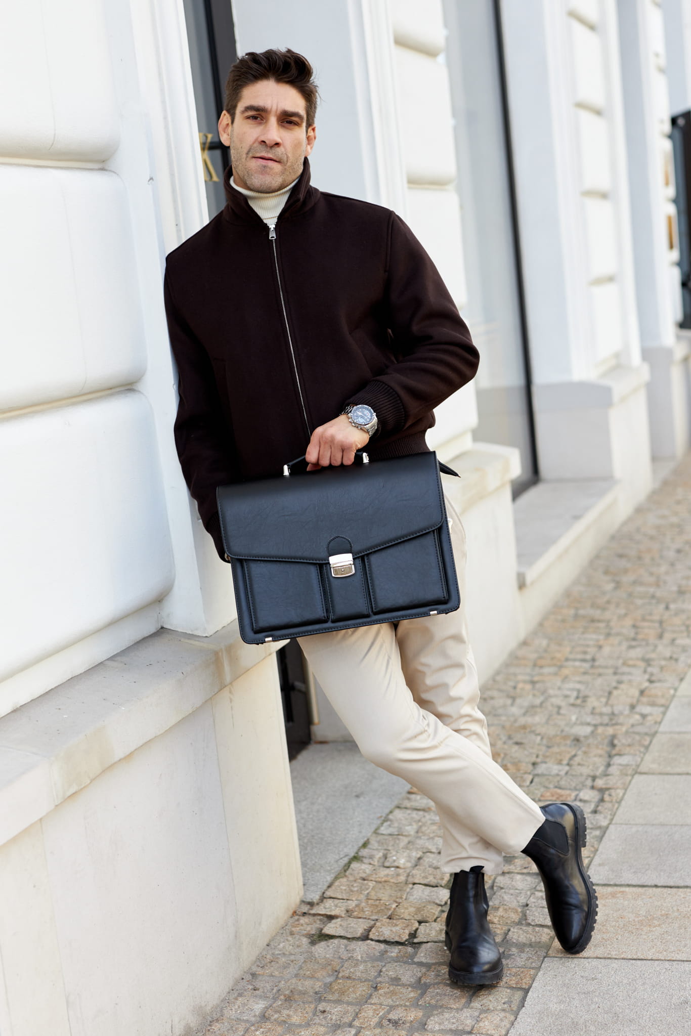 Szukasz torby, która podkreśli Twój profesjonalny wizerunek, a jednocześnie wytrzyma trudy codziennego użytkowania? Model Tizano T02 to klasyczna aktówka męska, która łączy tradycyjny design z nowoczesną funkcjonalnością. Produkt został stworzony przez polskiego producenta z 20-letnim doświadczeniem, co gwarantuje precyzję wykonania i dbałość o każdy detal. Czarna, ekologiczna skóra nadaje jej ponadczasowego charakteru, pasującego zarówno do garnituru, jak i stylu business casual.