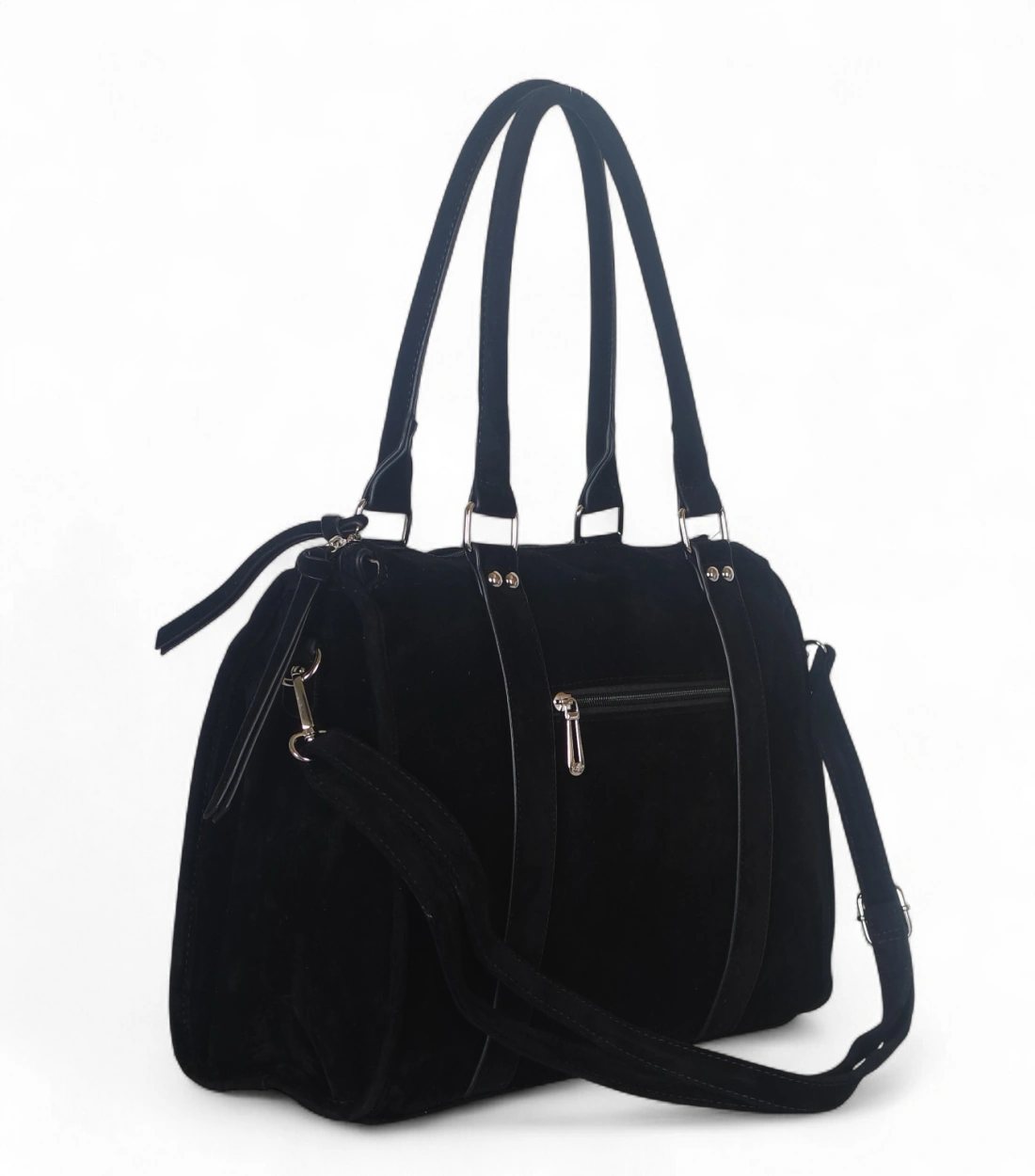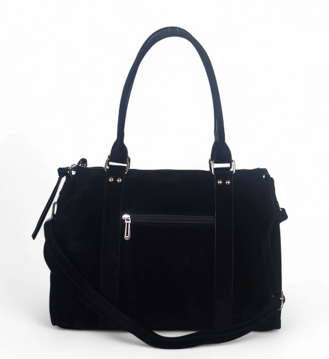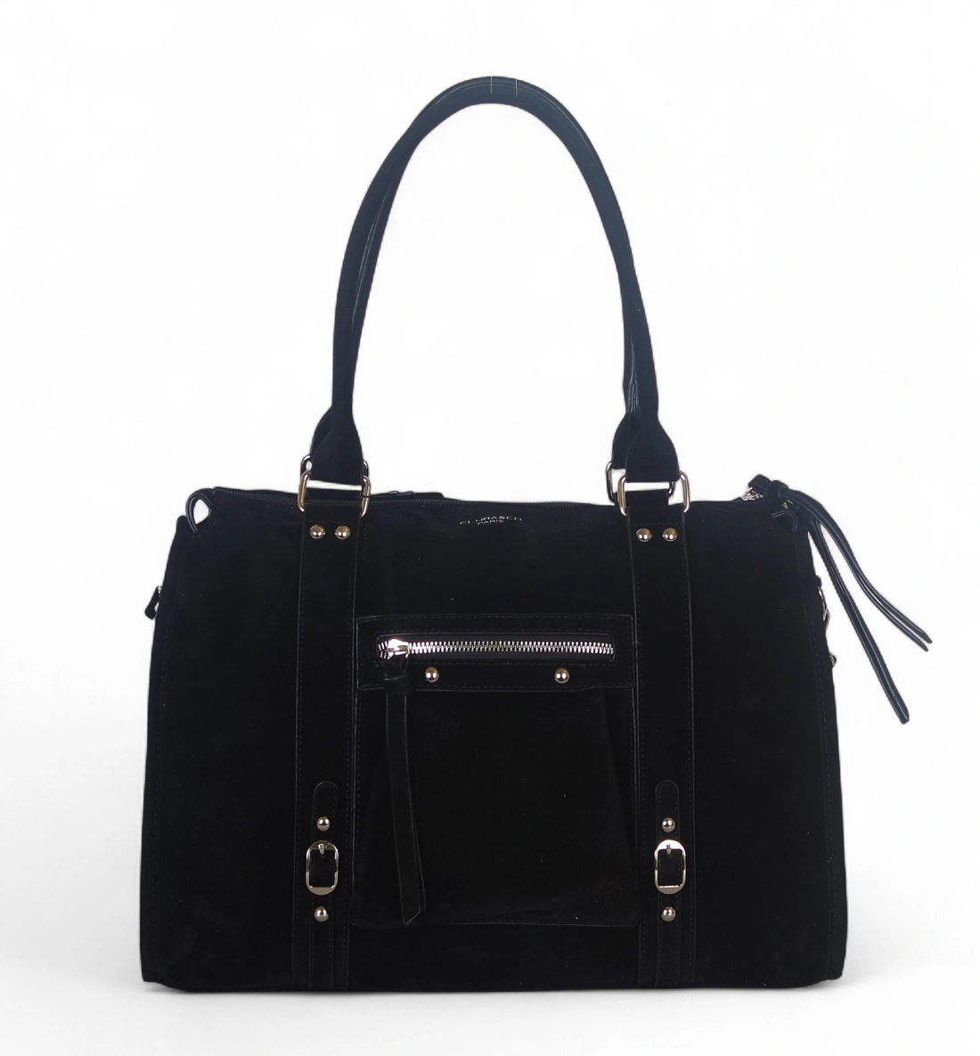 Duża torebka Flora&Co Paris – czarny shopper bag z zamszu ekologicznego, mieszcząca A4