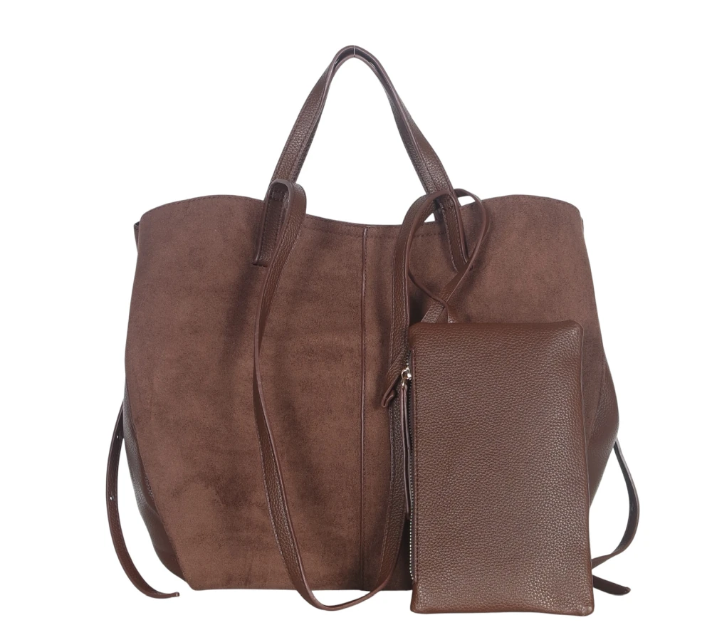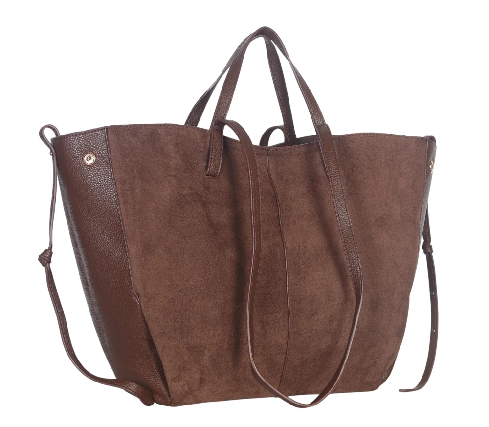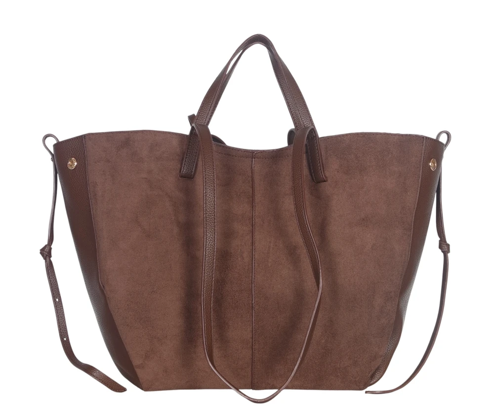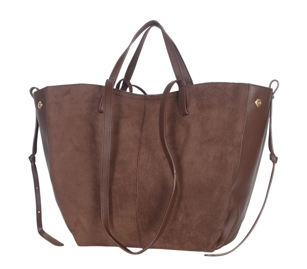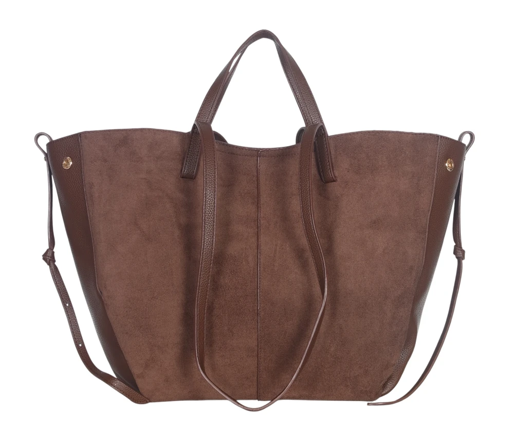 Duża torebka zamszowa shopper Gallantry Paris • Regulowana • Z saszetką