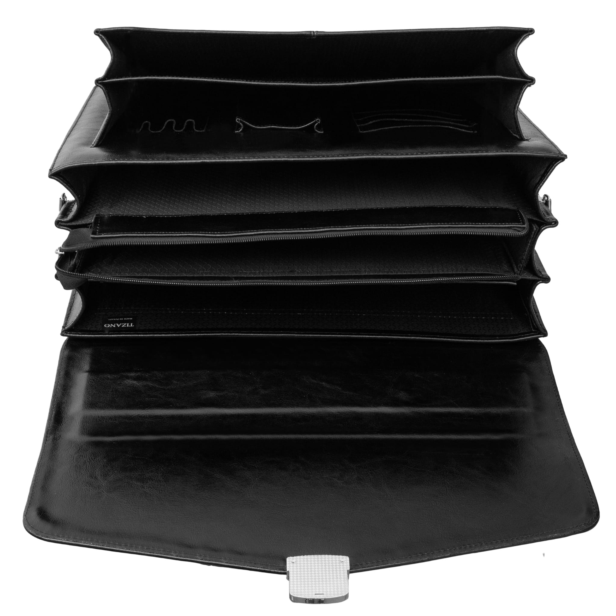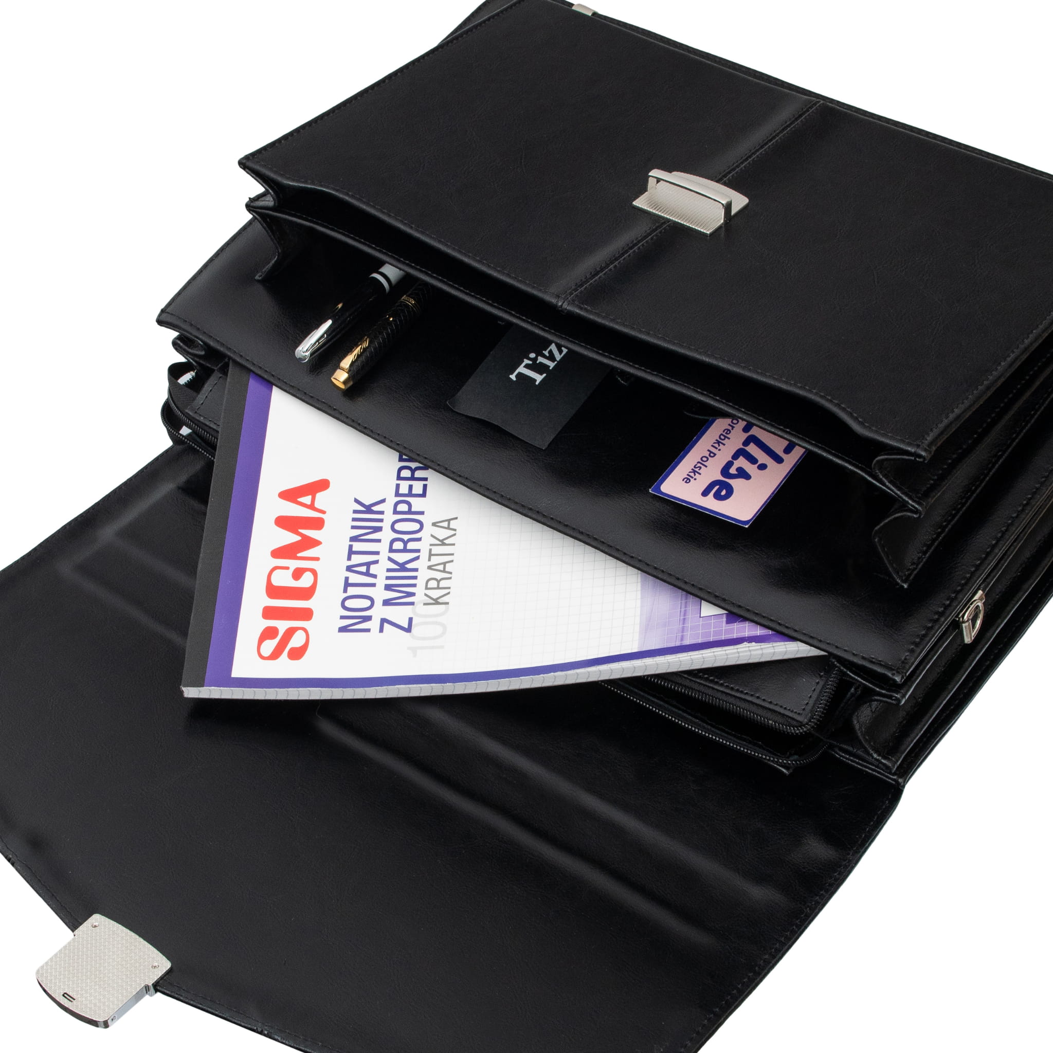 Wnętrze teczki zostało zaprojektowane z myślą o perfekcyjnym porządku. Model Tizano oferuje aż 3 duże komory, dzięki którym bez trudu posegregujesz dokumenty formatu A4 oraz niezbędne akcesoria biurowe.