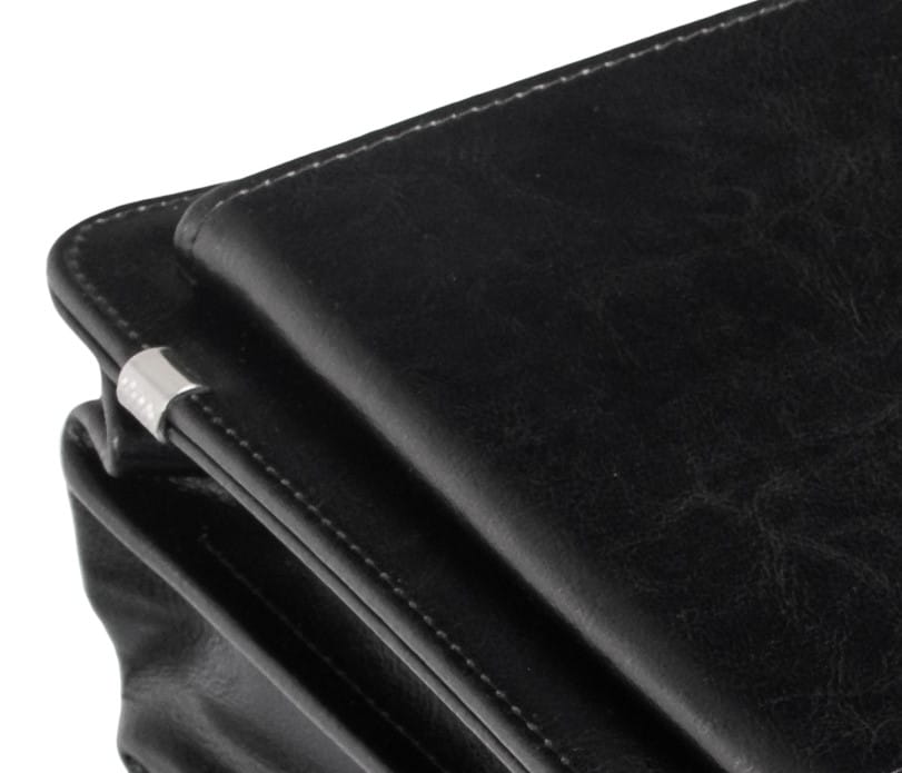 Spód teczki został wyposażony w praktyczne metalowe stopki ochronne, które zabezpieczają materiał przed otarciami i zabrudzeniami, gdy postawisz ją na podłożu. To inwestycja w jakość, która przetrwa wiele lat aktywnego użytkowania.