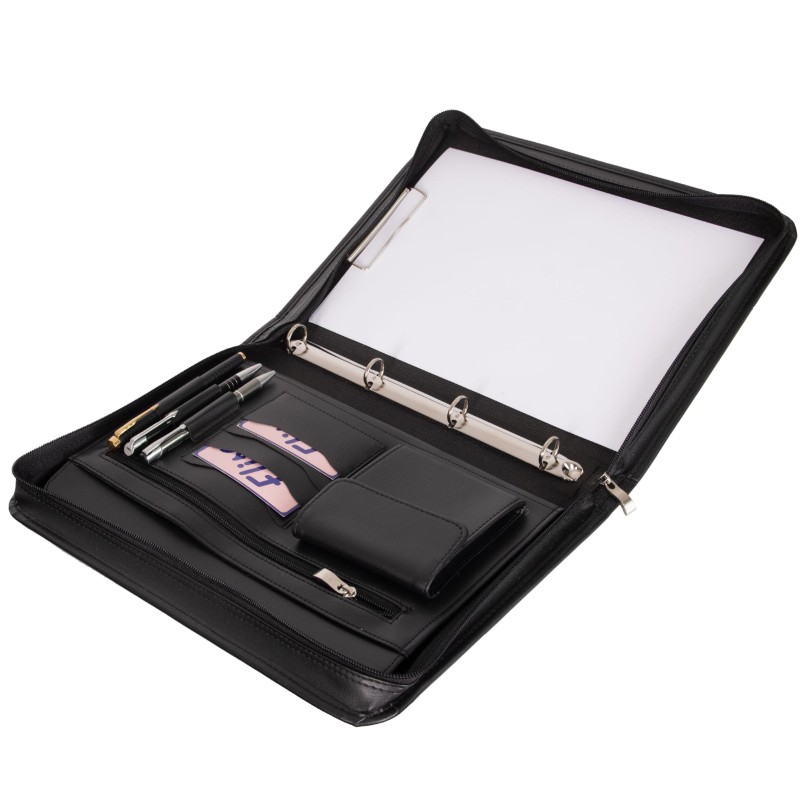 • Dodatki: Mechanizm ringowy, klips na dokumenty, kieszonka na zamek