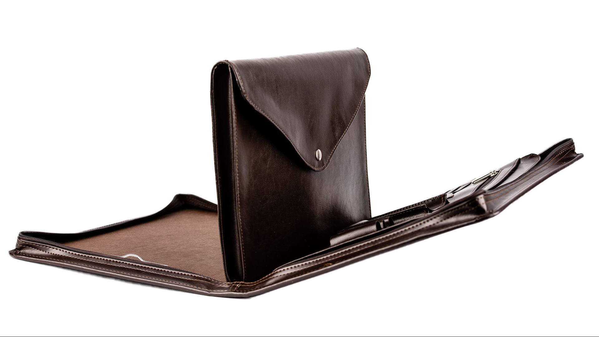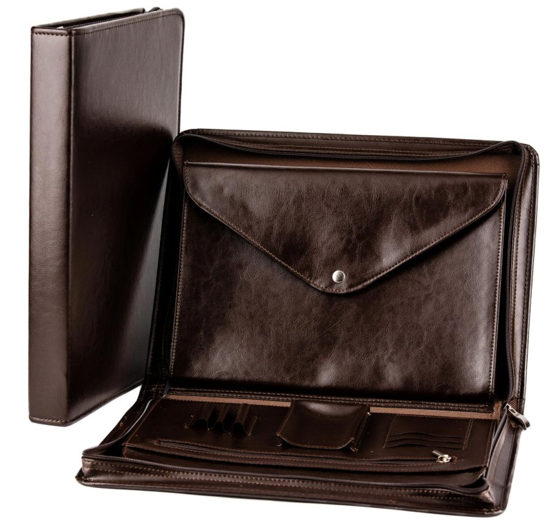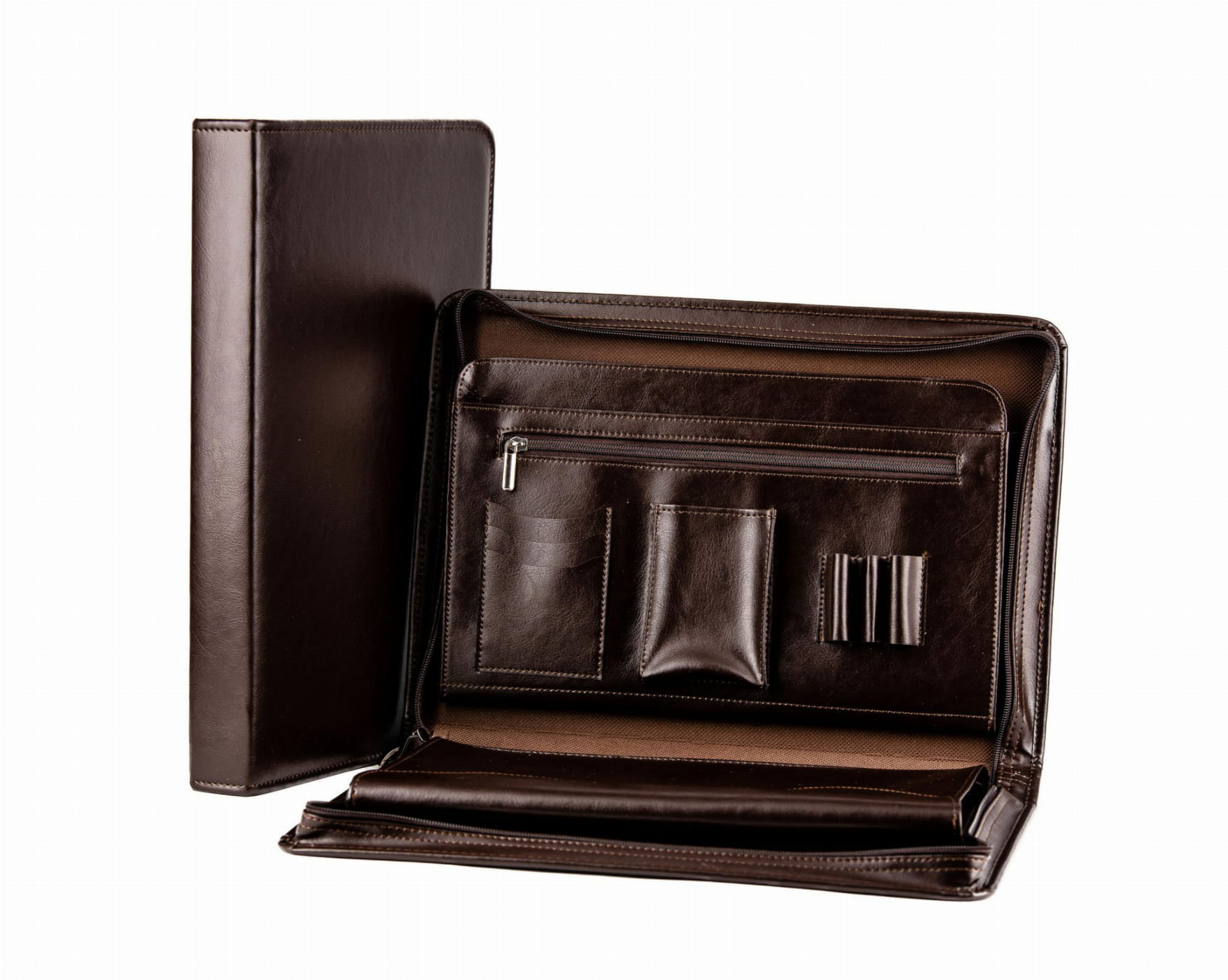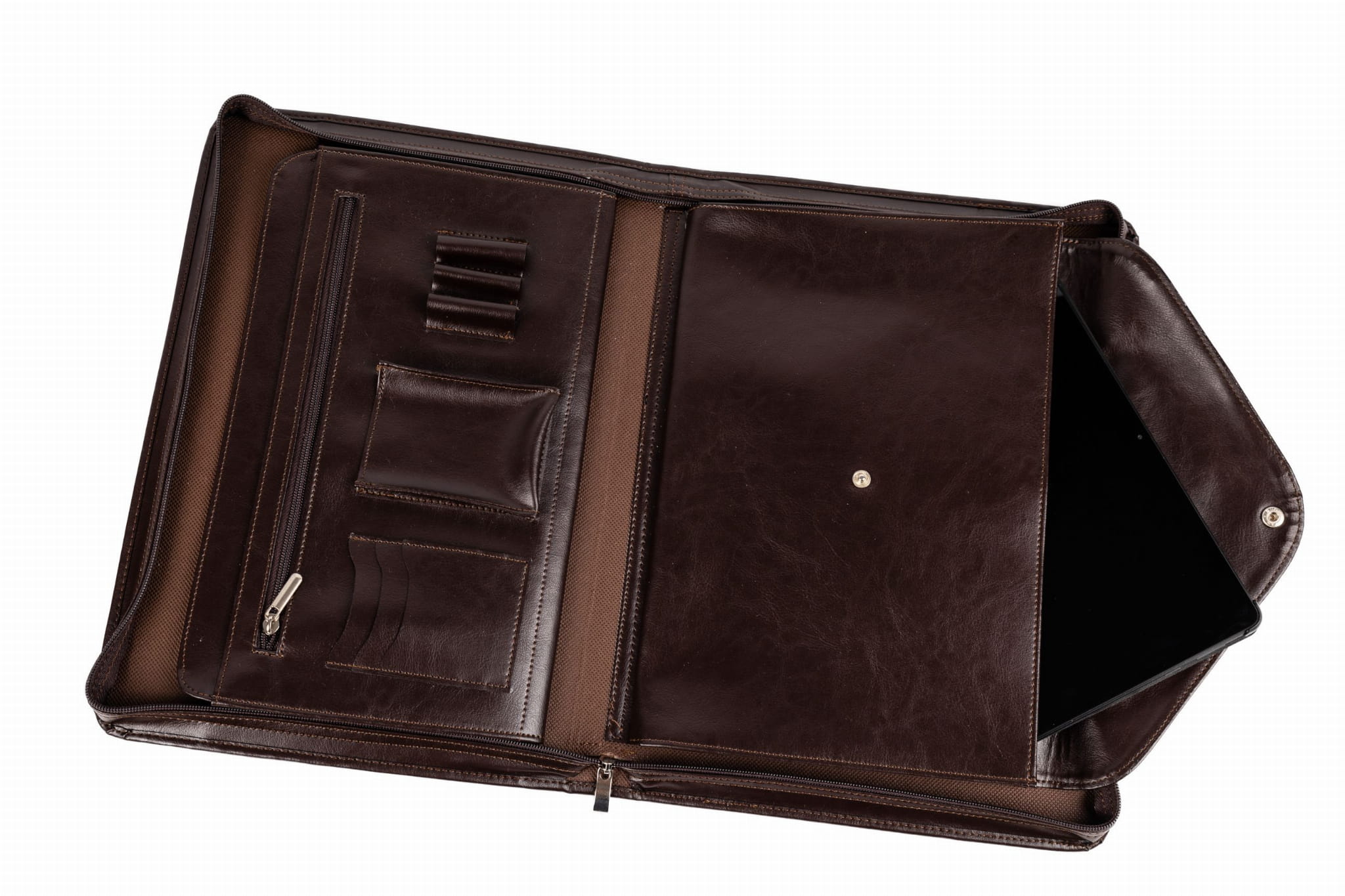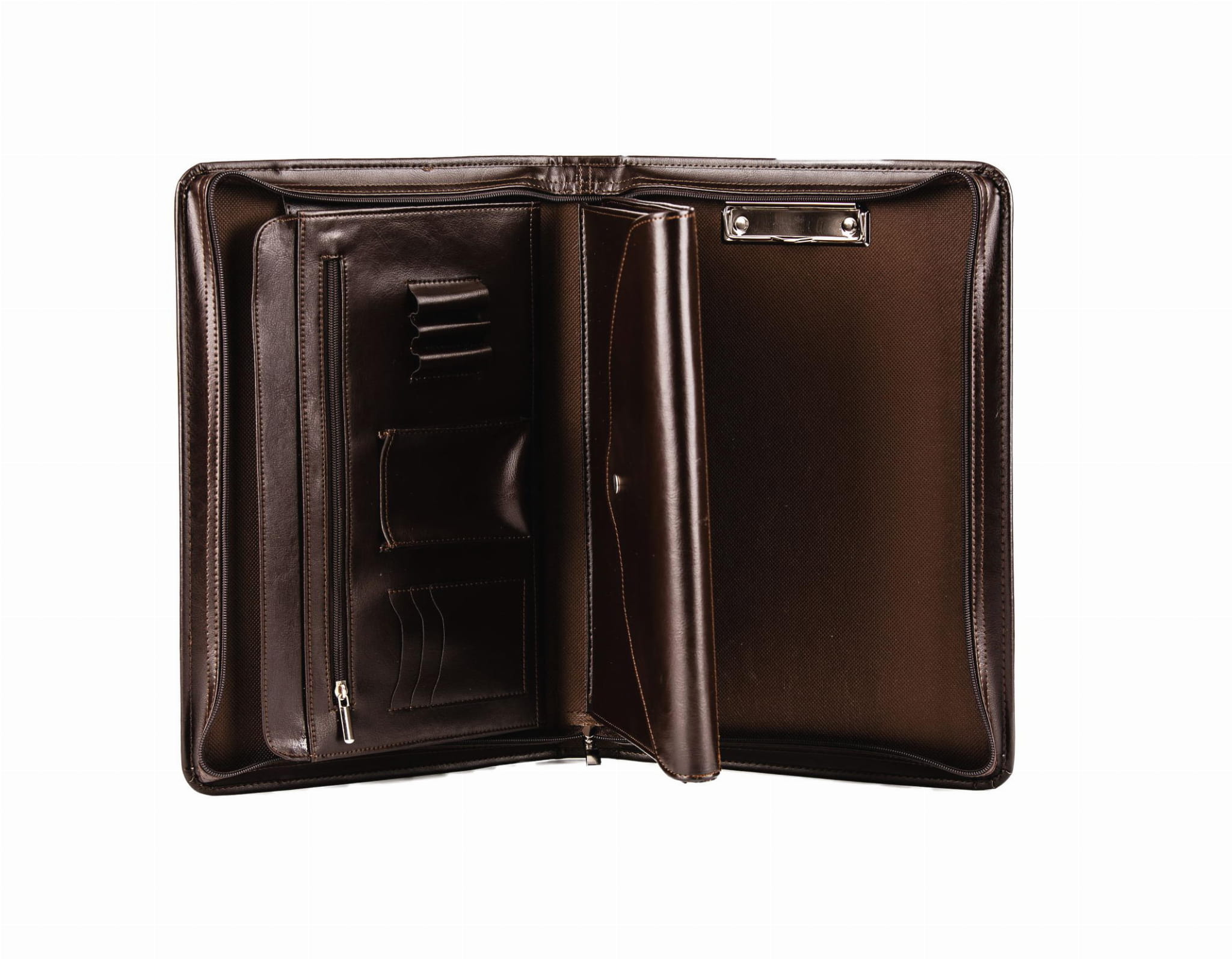 Wyposażenie: 2 przegrody, klips na dokumenty, miejsca na wizytówki, uchwyty na długopisy, kieszeń wewnętrzna.