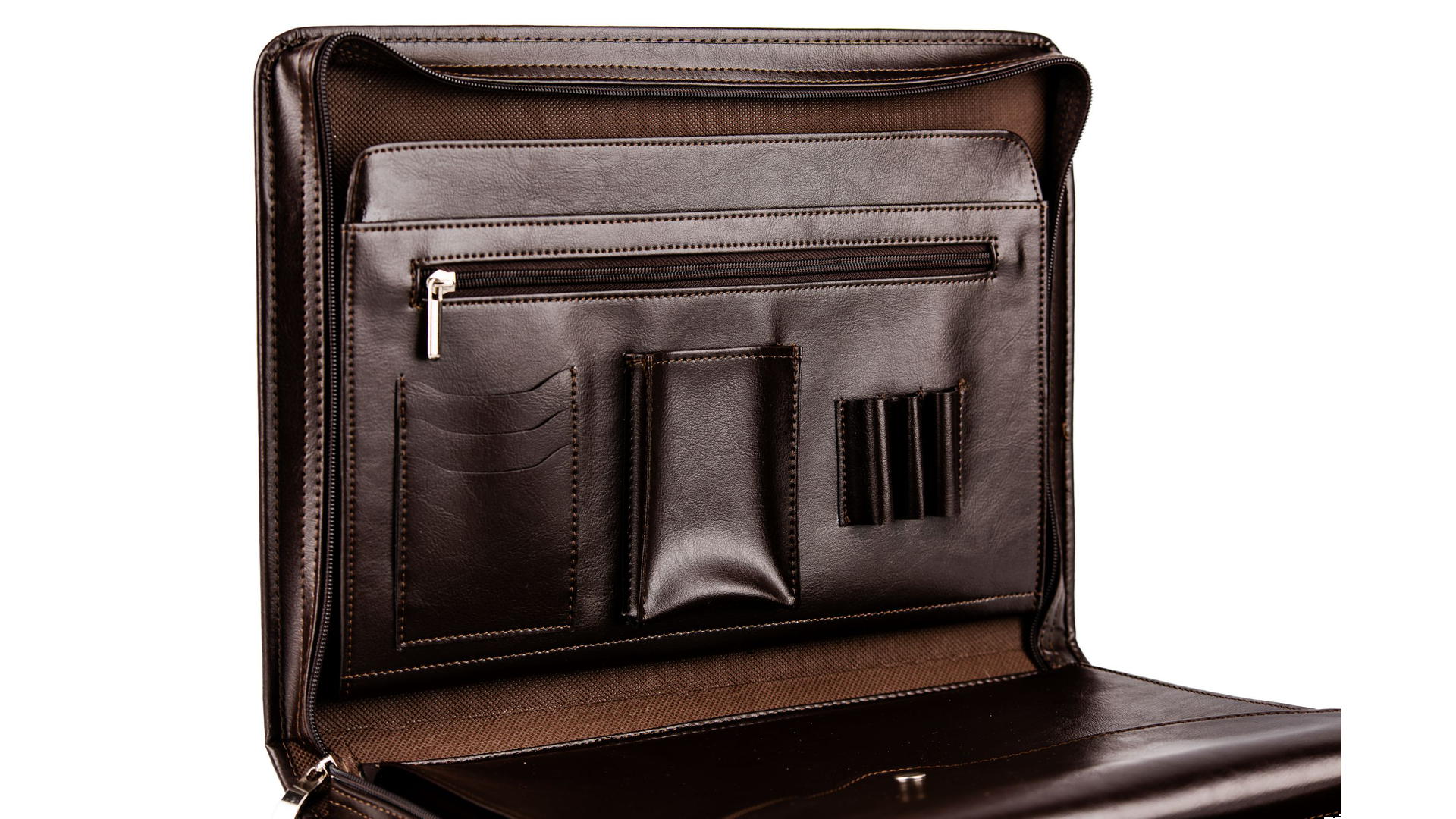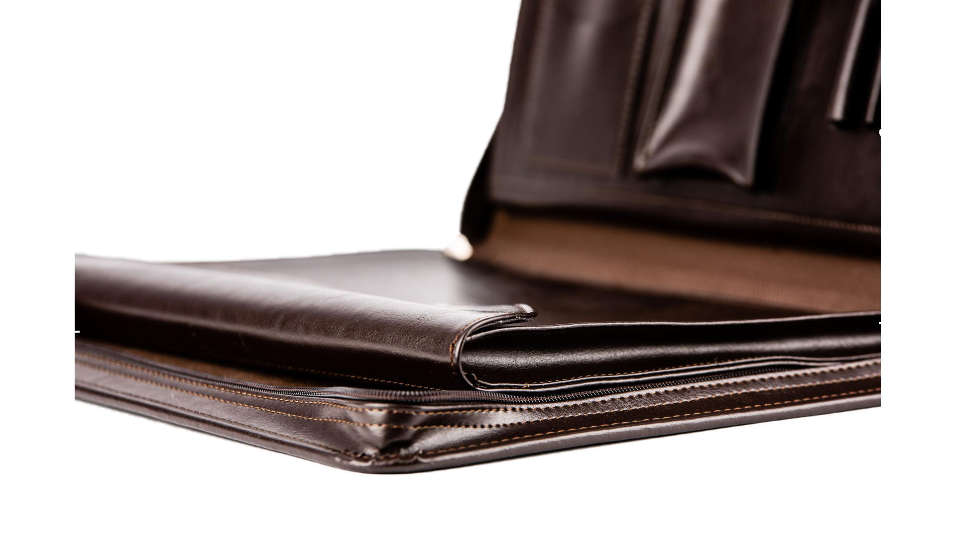 Wnętrze skrywa dwie wygodne przegrody, które pozwalają na segregację materiałów, czyniąc z torby profesjonalny organizer, który podkreśli Twój autorytet podczas spotkań służbowych.