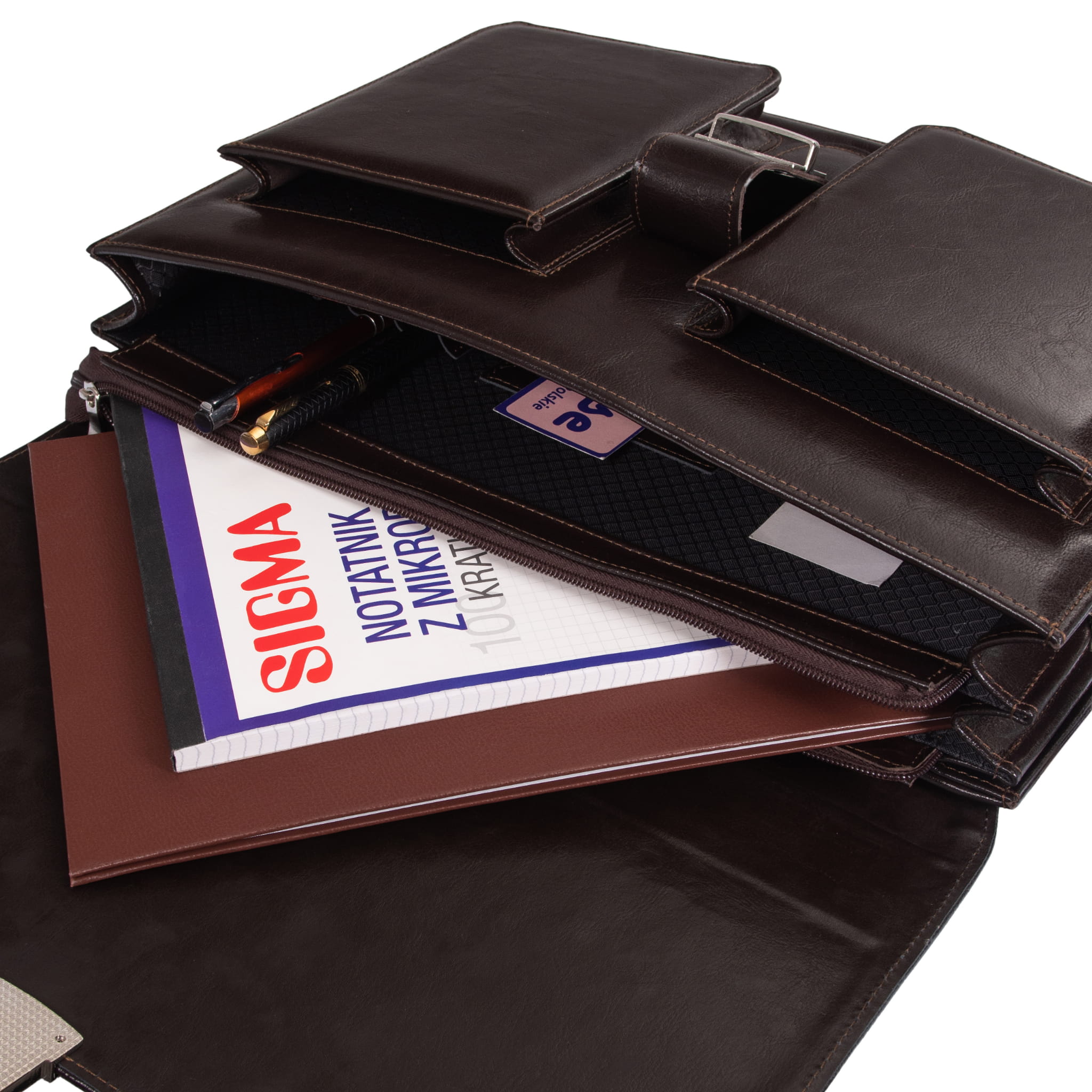Zapomnij o chaosie w dokumentach. Wnętrze teczki zostało zaprojektowane tak, aby pomieścić wszystko, czego potrzebujesz w pracy lub podczas spotkań biznesowych: