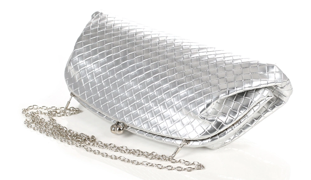 Elegancka Torebka Wieczorowa Kopertówka o Plecionej Fakturze – Pojemne Puzderko Wizytowe na Łańcuszku