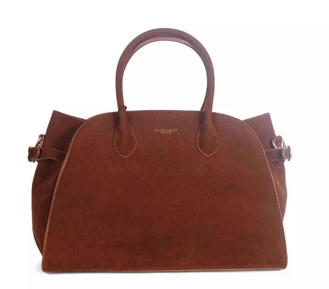 Elegancka torebka Flora&Co Paris – duża brązowa torba z zamszu ekologicznego na ramię i do ręki