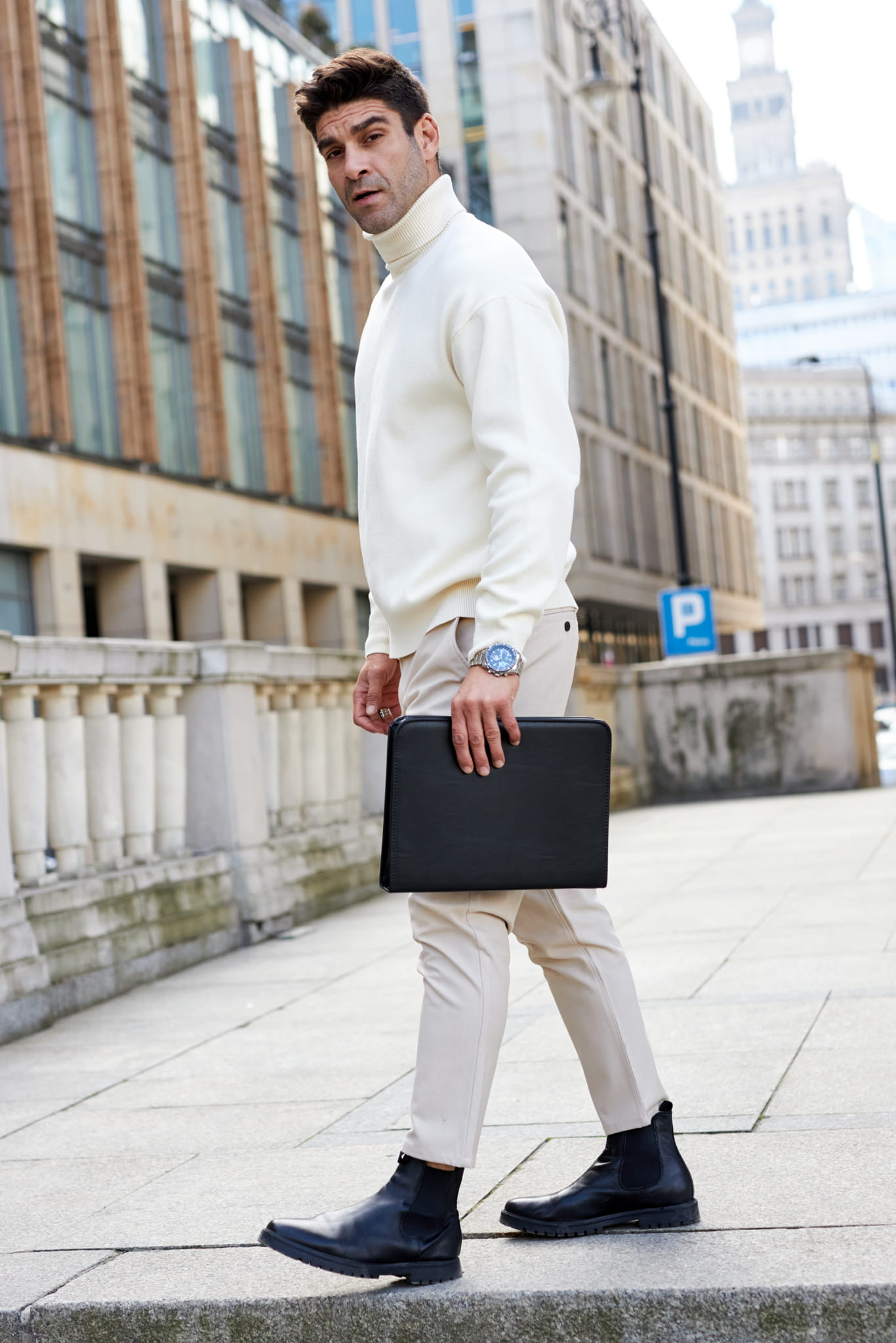 Ten modny neseser został zaprojektowany z myślą o osobach, które cenią swój czas. Koniec z nerwowym przeszukiwaniem plecaka w poszukiwaniu telefonu czy długopisu. Wnętrze aktówki skrywa przemyślany system organizacji: