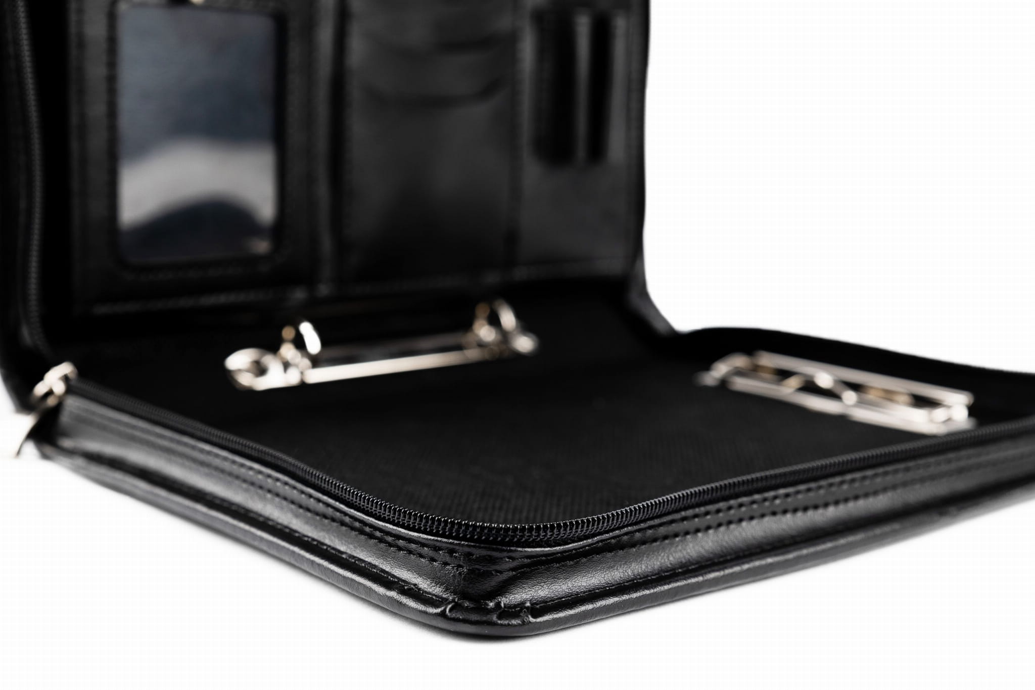 Nasza teczka konferencyjna została zaprojektowana z myślą o maksymalnej użyteczności. Wnętrze skrywa szereg udogodnień, które ułatwią Ci pracę w każdych warunkach: