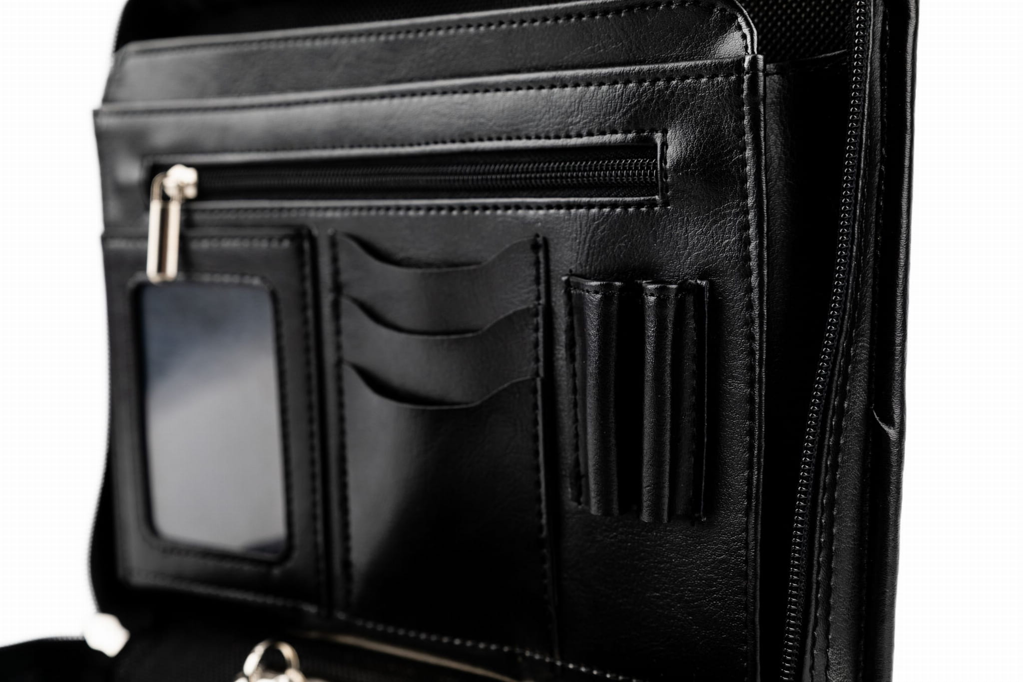 • Miejsce na detale: Dedykowane sloty na wizytówki oraz uchwyty na długopisy.
