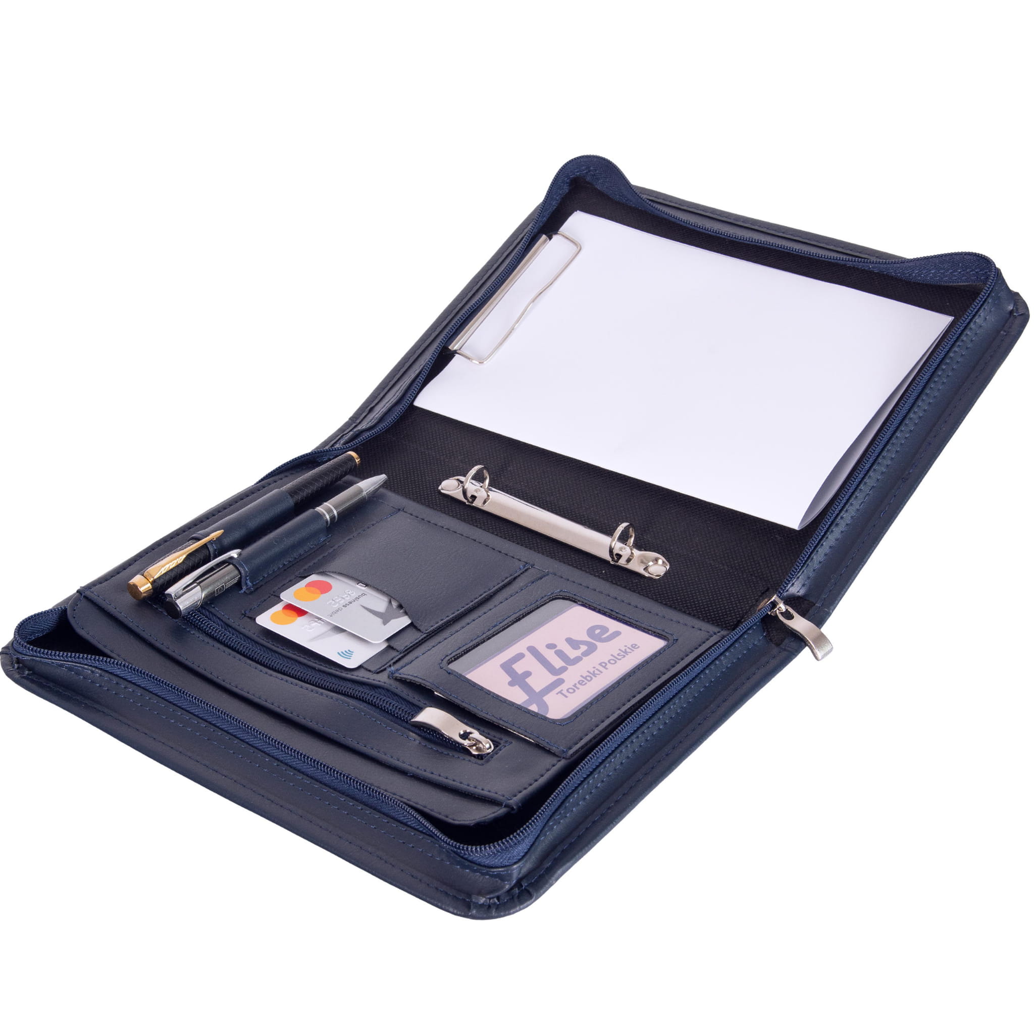 • Dodatki: Mechanizm ringowy, klips do dokumentów, srebrne wykończenia