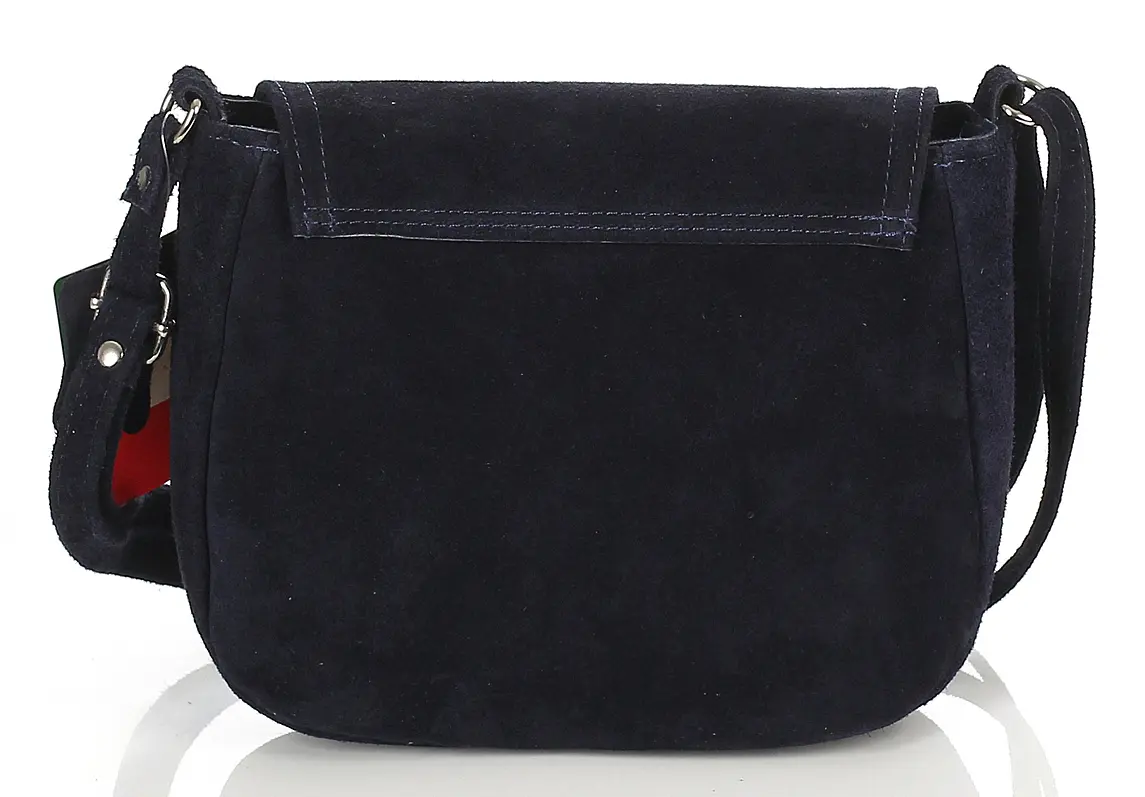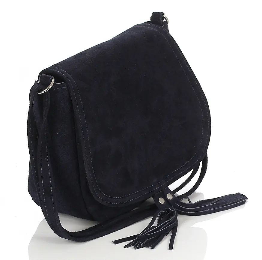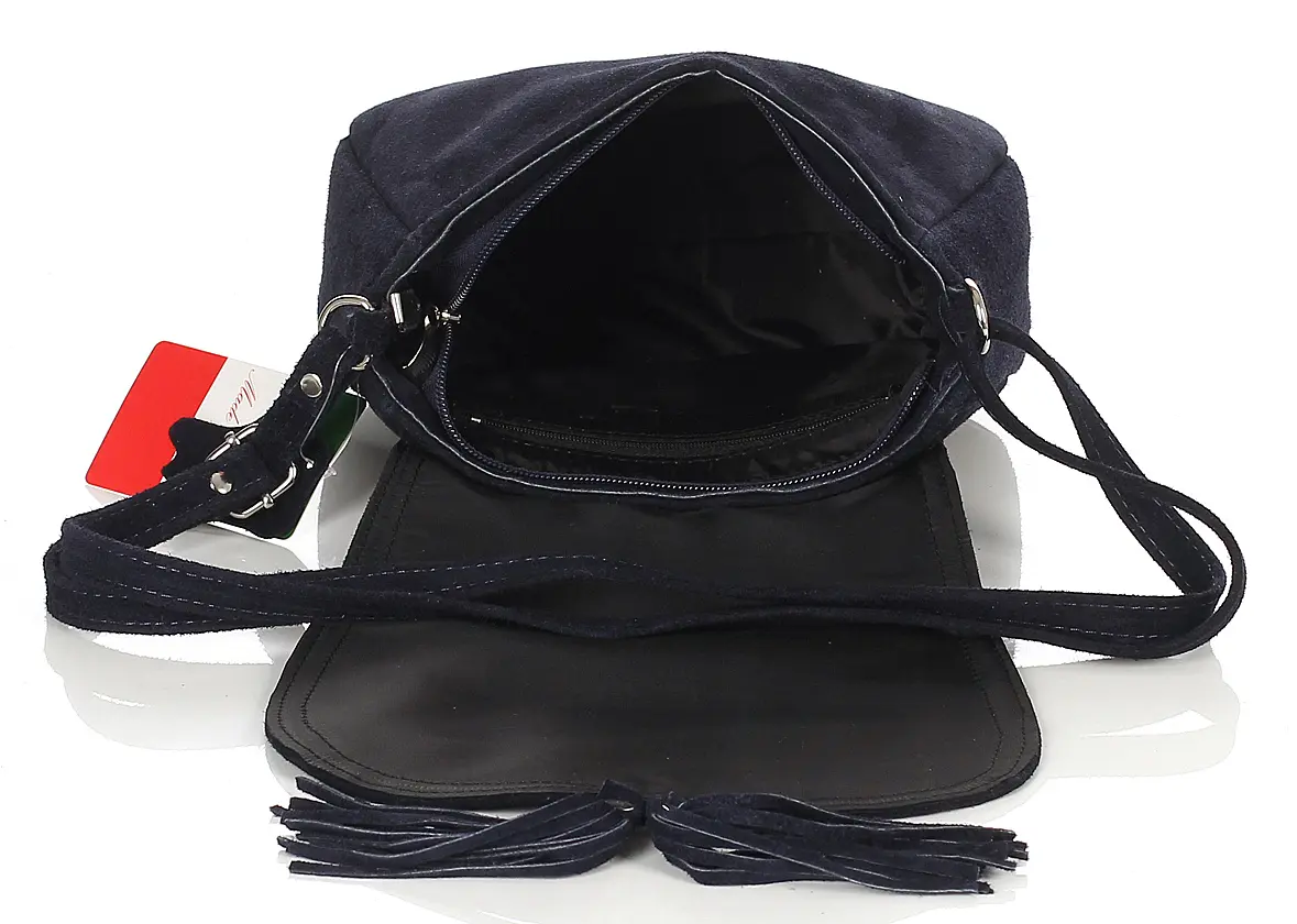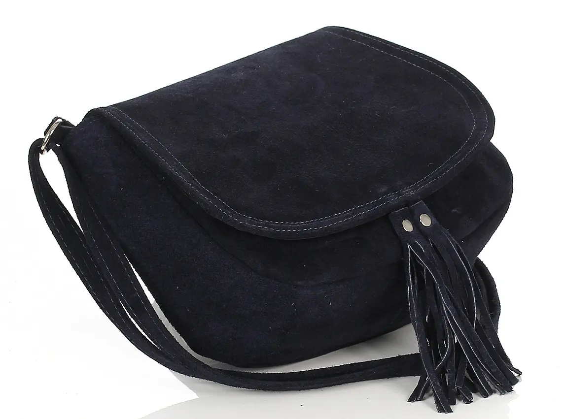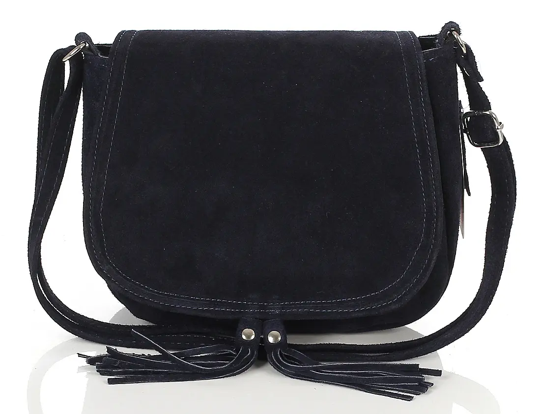 Granatowa zamszowa torebka listonoszka z frędzlem
