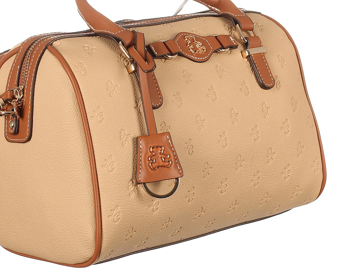 Stylowa torebka damska typu kuferek renomowanej francuskiej marki Lulu Castagnette. Torebka wykonana z najwyższej jakości skóry ekologicznej. Wykończona mocną podszewką. Delikatne logo misia oraz ciekawe łączenia kolorów dodają torebce uroku.