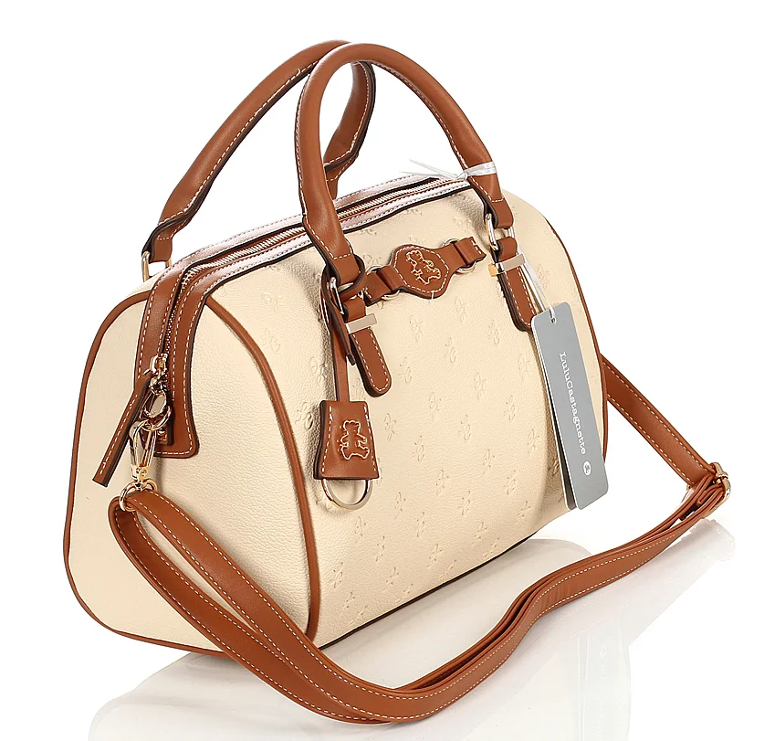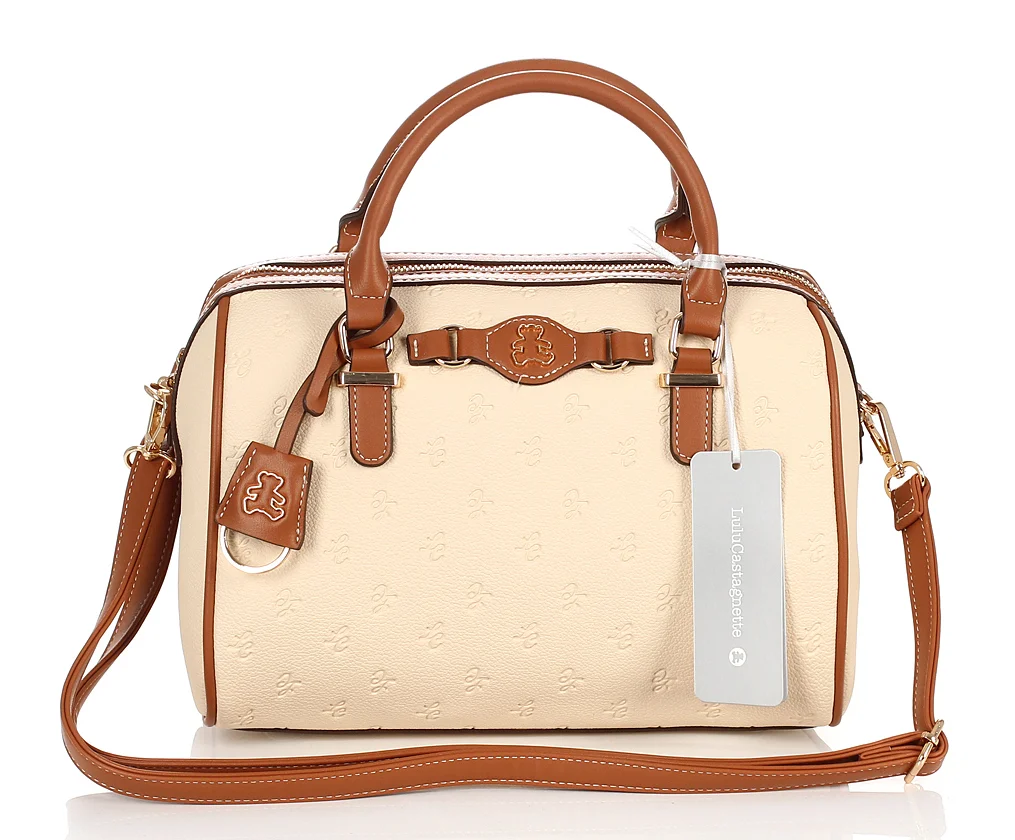 Stylowa torebka damska typu kuferek renomowanej francuskiej marki Lulu Castagnette. Torebka wykonana z najwyższej jakości skóry ekologicznej. Wykończona mocną podszewką. Delikatne logo misia oraz ciekawe łączenia kolorów dodają torebce uroku.