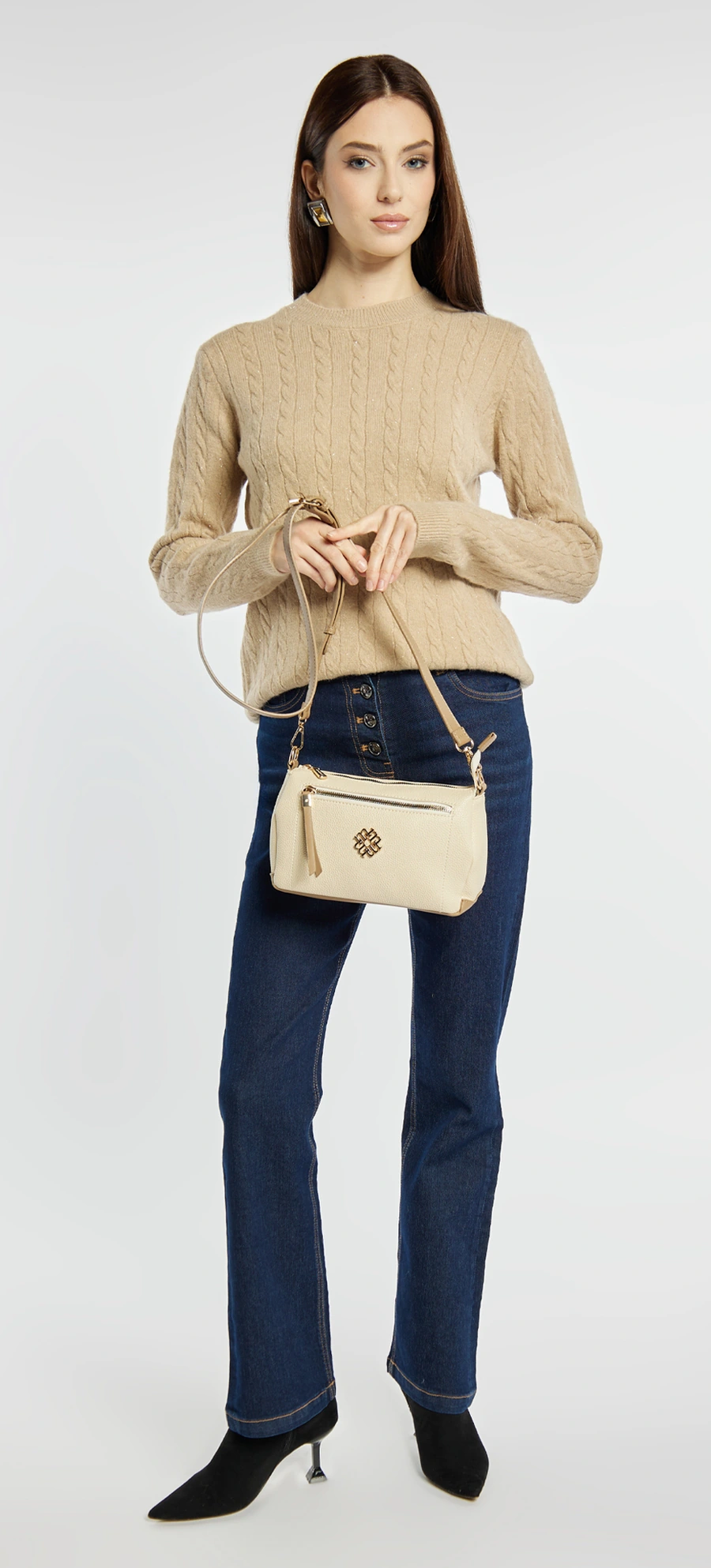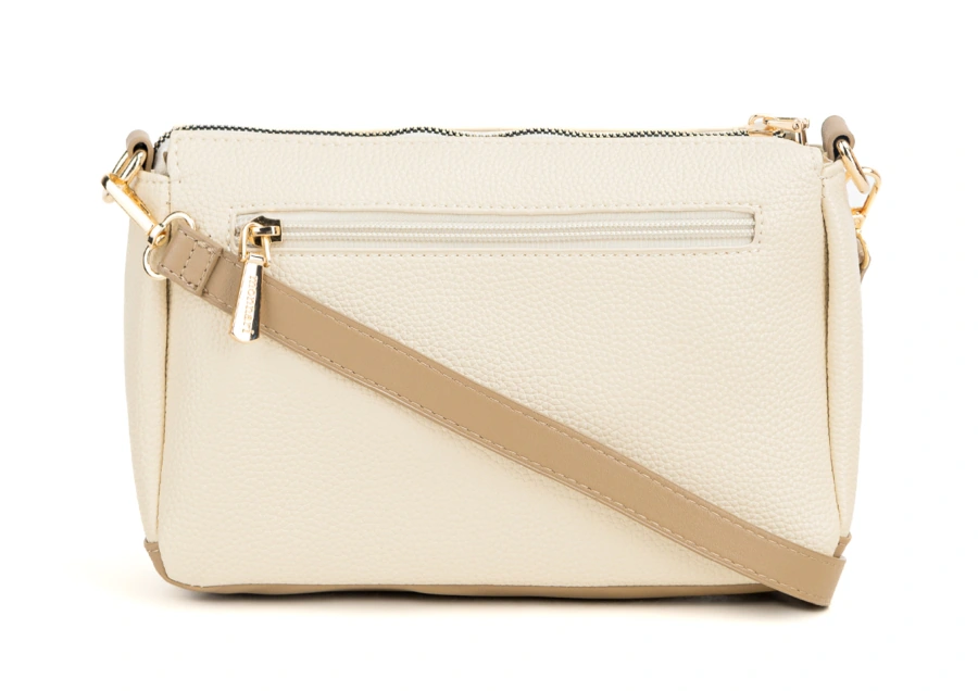 Mała Beżowa Torebka Listonoszka Damska MONNARI z Brązowymi Wstawkami