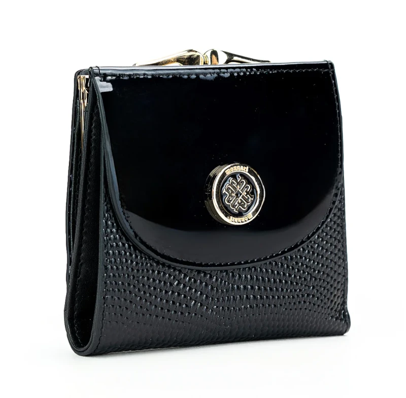 Efektowny zgrabny portfel damski wykonany z wysokiej jakości lakierowanej skóry naturalnej o pięknej fakturze imitującej skórę krokodyla. Delikatne logo na froncie dodaje całości uroku. Rozbudowane wnętrze wykończone podszewką z logo producenta.