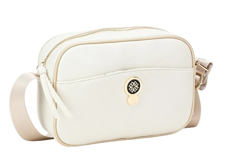 Efektowna, niewielka torebka listonoszka na efektownym logowanym pasku.