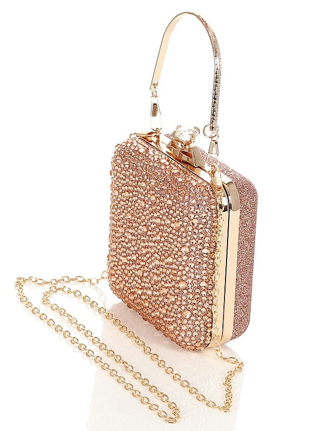 Torebka wyposażona jest w długi, odpinany łańcuszek, oraz efektowną rączkę.