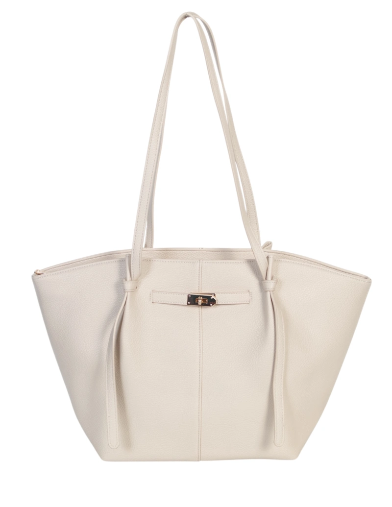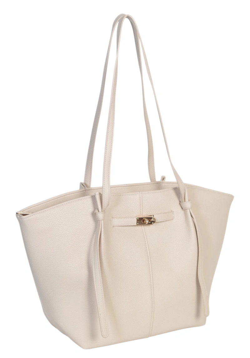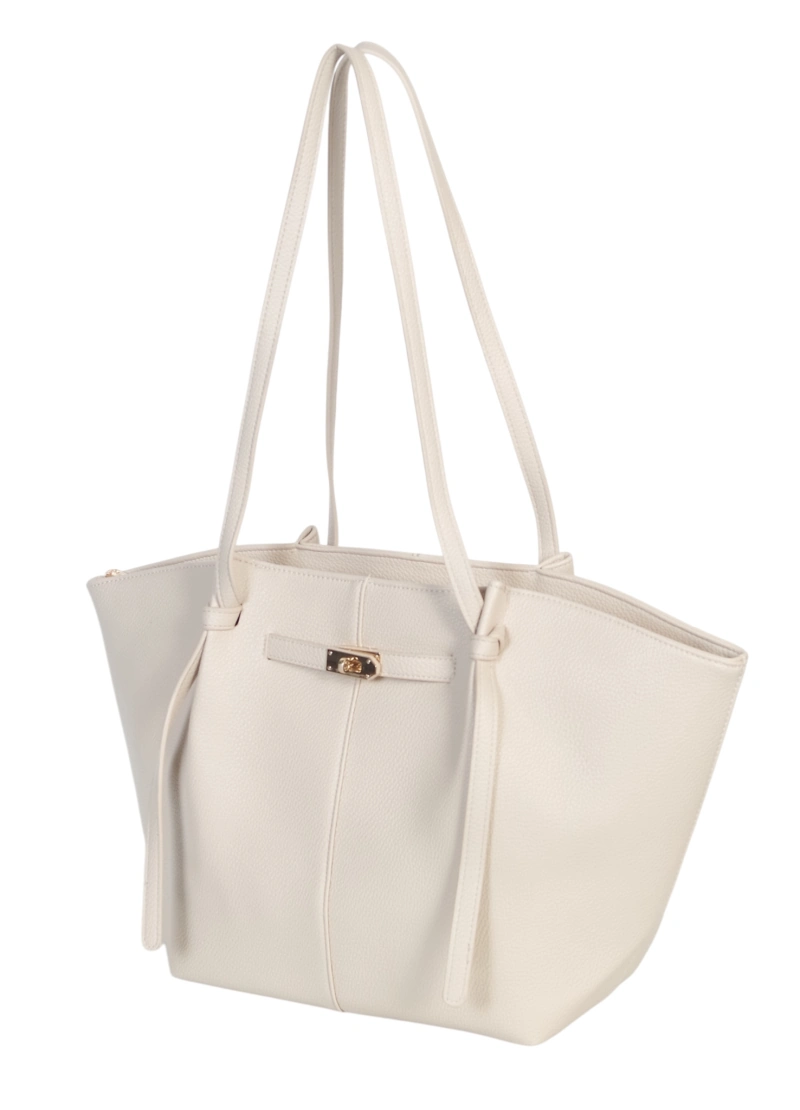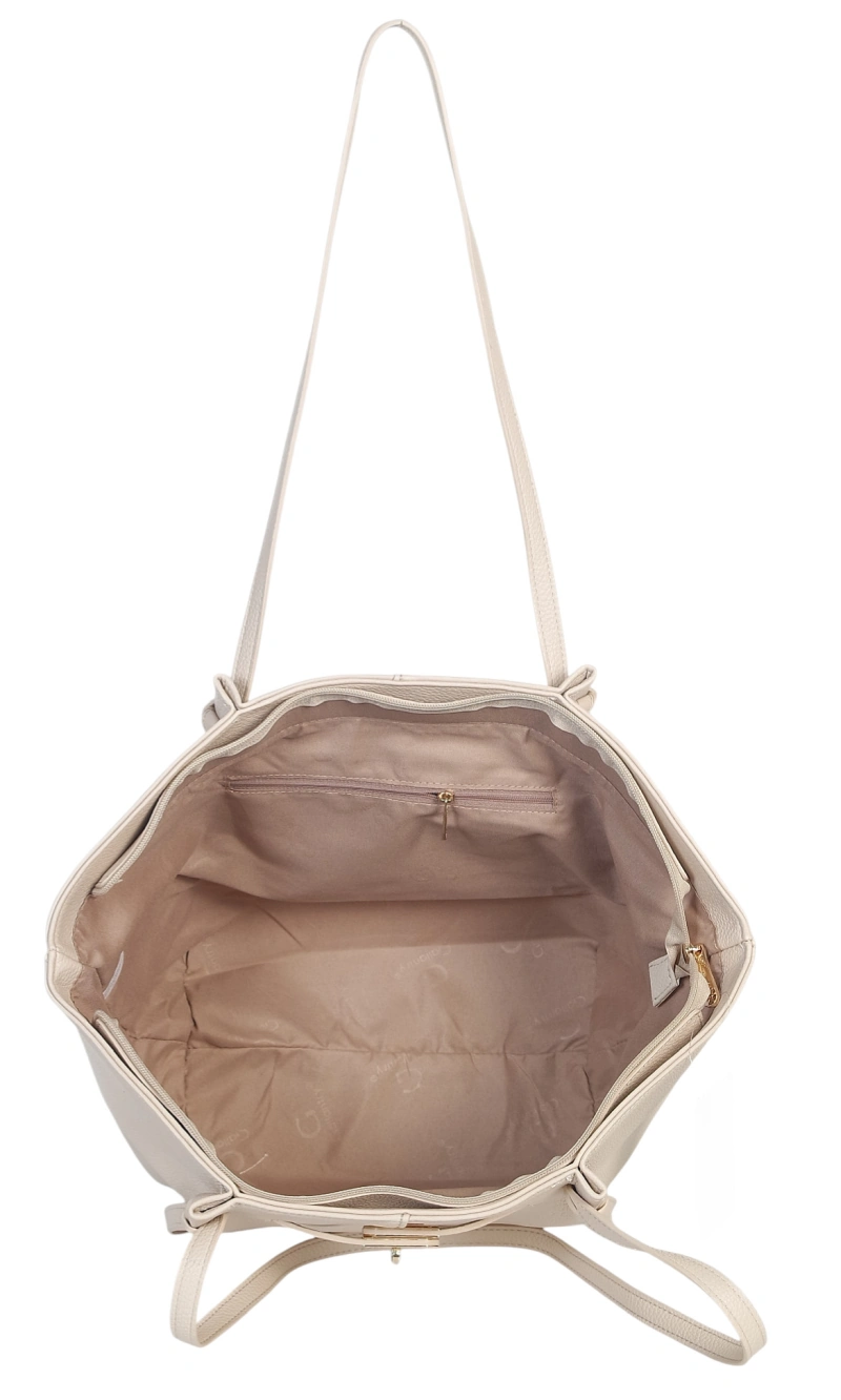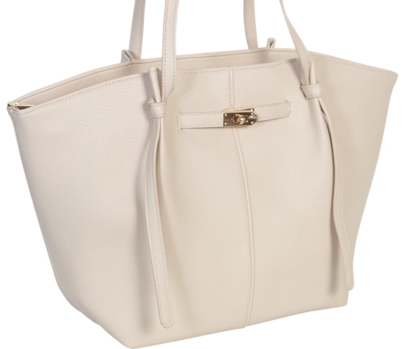 Pojemna Duża Kremowa Torebka Shopper Damska A4 Gallantry Złote Okucia Na Ramię
