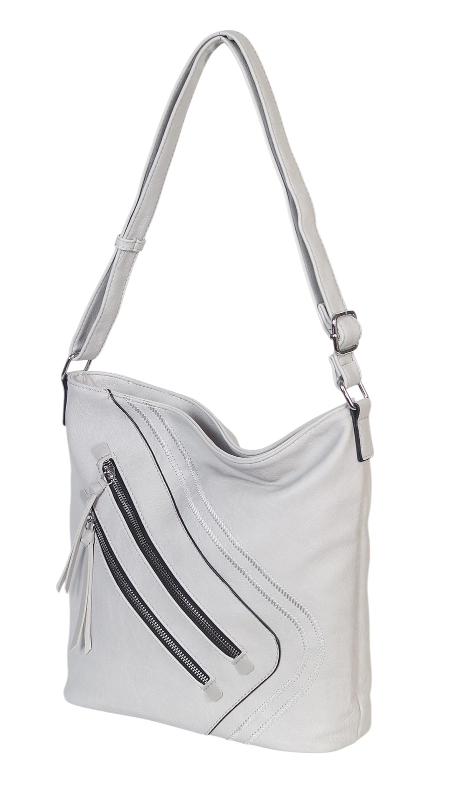 Ta efektowna listonoszka damska to połączenie nowoczesnego designu z maksymalną użytecznością. Wykonana z miękkiej, a zarazem wytrzymałej skóry ekologicznej premium, prezentuje się niezwykle szlachetnie. Front torebki zdobią estetyczne przeszycia, które nadają jej unikatowego wyrazu, sprawiając, że model ten pasuje do niemal każdej stylizacji – od biurowego looku po weekendowy casual.