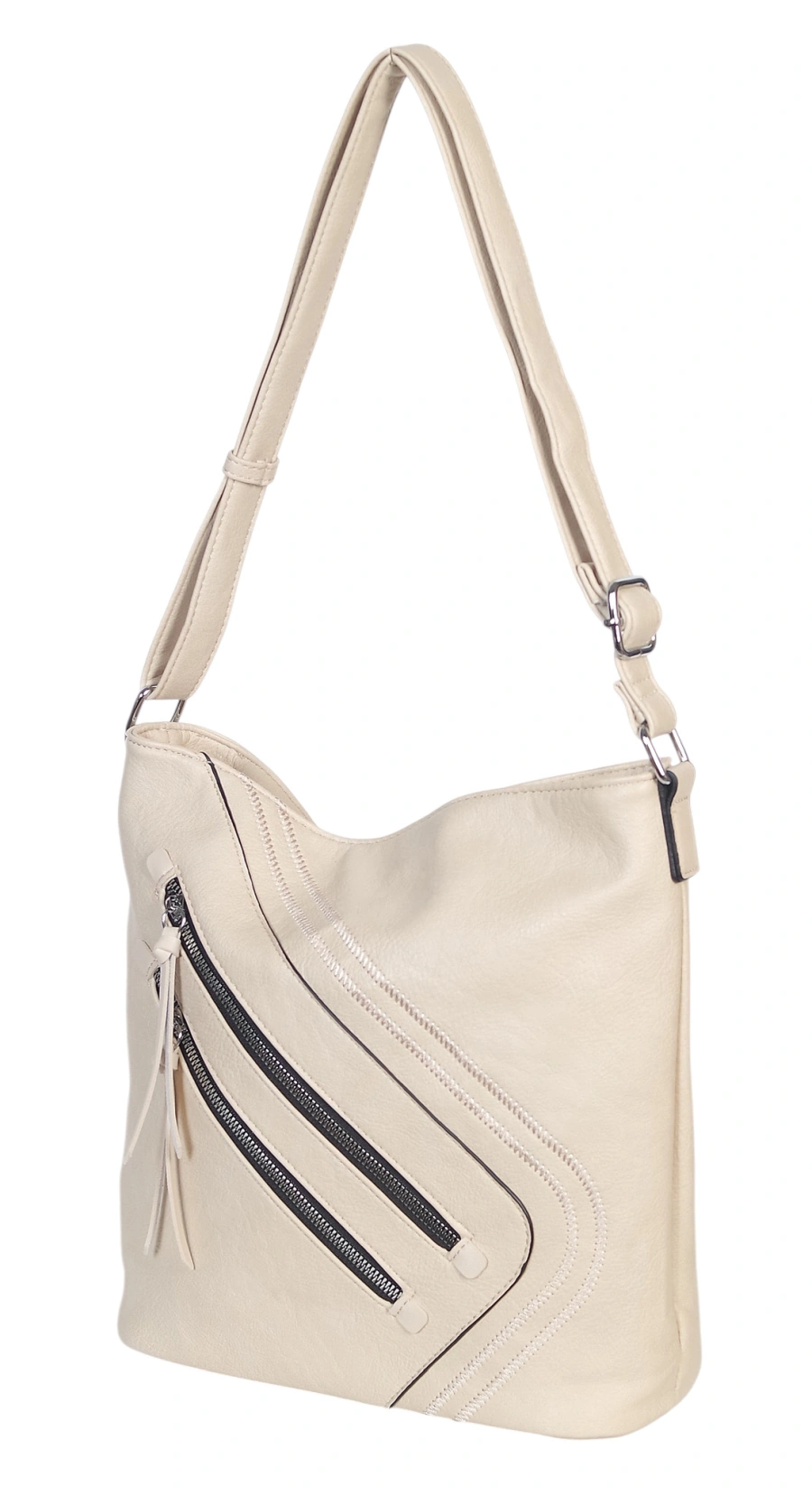Ta efektowna listonoszka damska to połączenie nowoczesnego designu z maksymalną użytecznością. Wykonana z miękkiej, a zarazem wytrzymałej skóry ekologicznej premium, prezentuje się niezwykle szlachetnie. Front torebki zdobią estetyczne przeszycia, które nadają jej unikatowego wyrazu, sprawiając, że model ten pasuje do niemal każdej stylizacji – od biurowego looku po weekendowy casual.