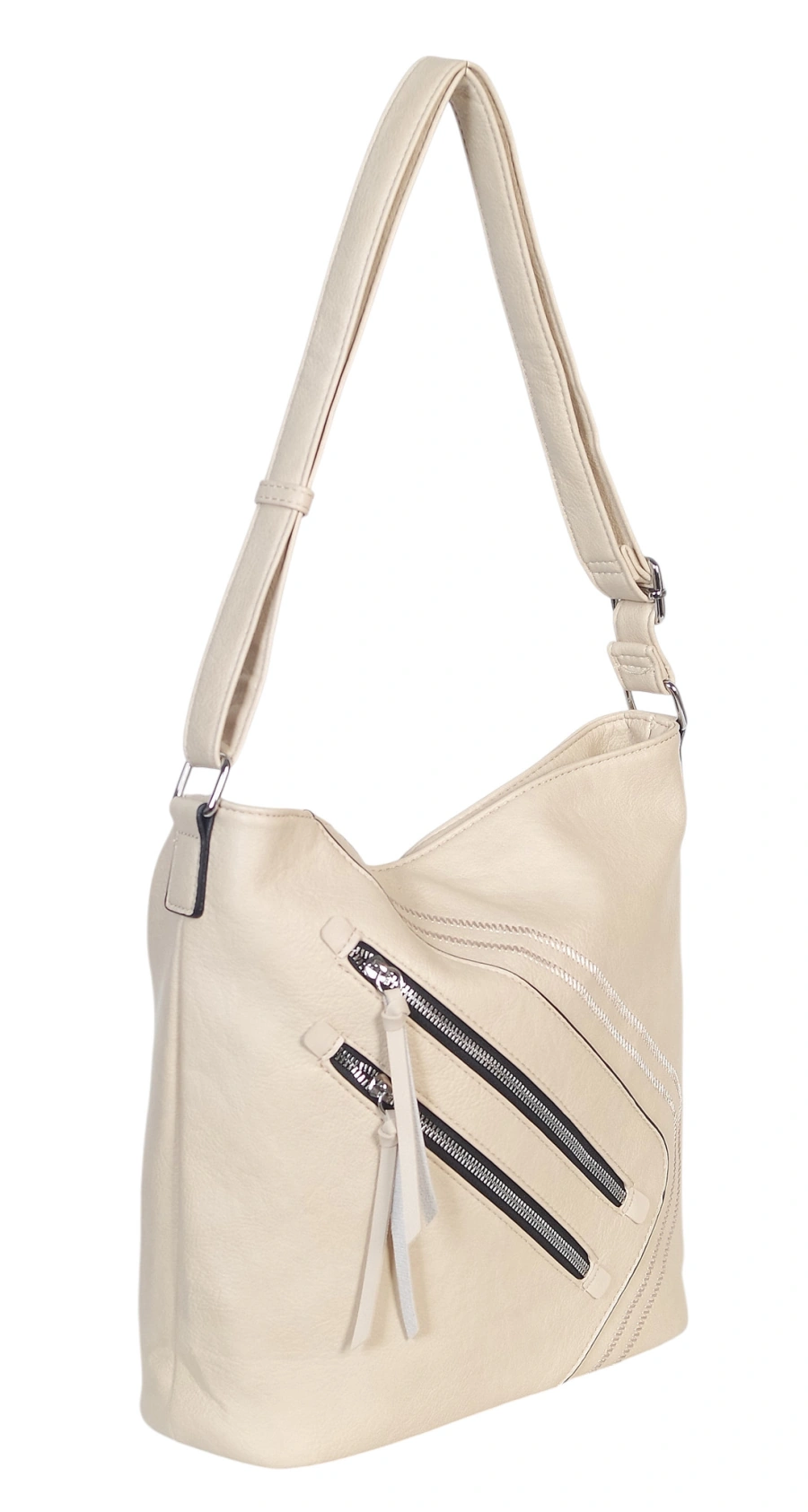 Torebka została zaprojektowana z myślą o kobietach, które cenią szybki dostęp do akcesoriów. Na zewnątrz umieszczono trzy kieszenie na suwak (dwie z przodu i jedną z tyłu), idealne na klucze, bilet czy dokumenty. Dzięki długiemu, regulowanemu paskowi, listonoszkę można idealnie dopasować do wzrostu i preferowanego sposobu noszenia – na ramieniu lub wygodnie przez ramię.
