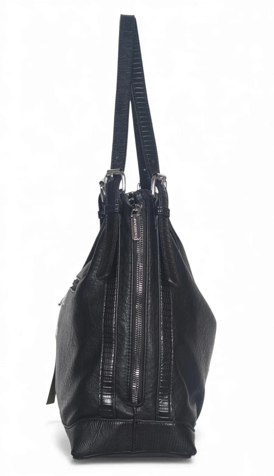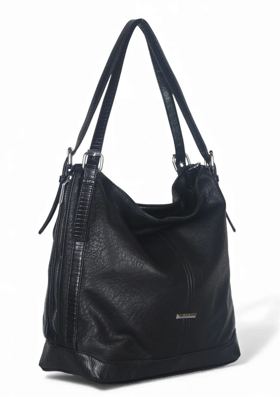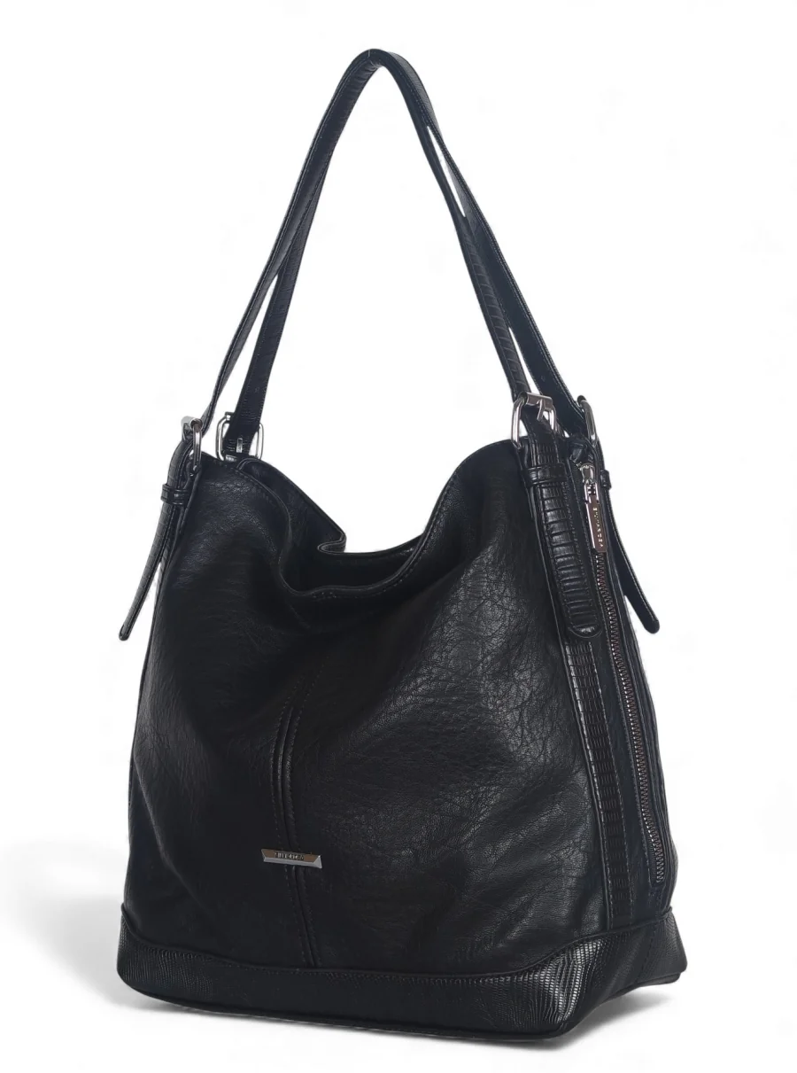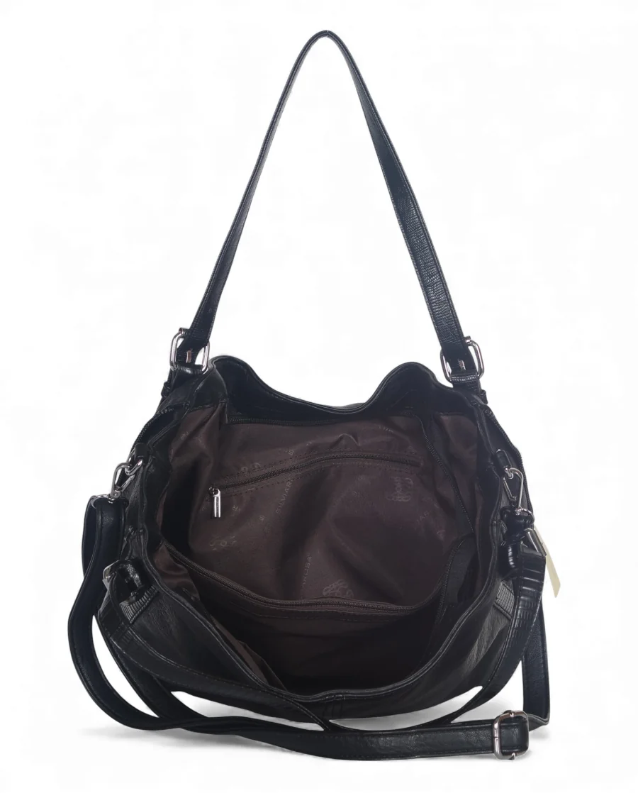 Model wykończony jest mocną podszewką kaletniczą, a rozbudowane, dwukomorowe wnętrze z dużą ilością kieszonek ułatwia utrzymanie porządku. Regulowane rączki oraz dopinany długi pasek sprawiają, że to idealna torebka na ramię i przez ramię – doskonała do pracy, na zakupy i na co dzień.