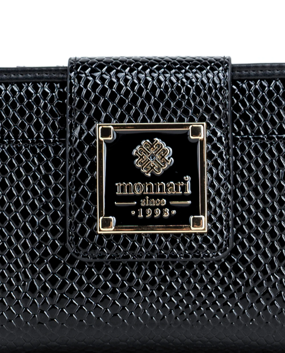 Portfel damski Monnari czarny lakier – elegancki portfel ze skóry ekologicznej w wzór węża