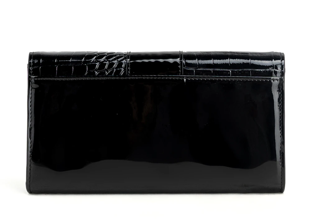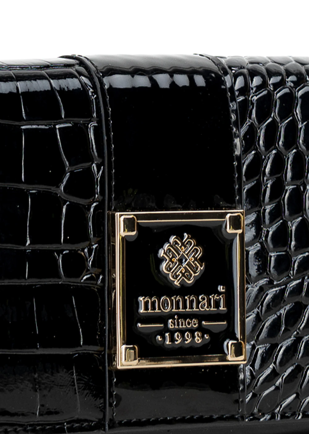Portfel damski Monnari czarny lakier krokodyl – elegancki portfel ze skóry ekologicznej