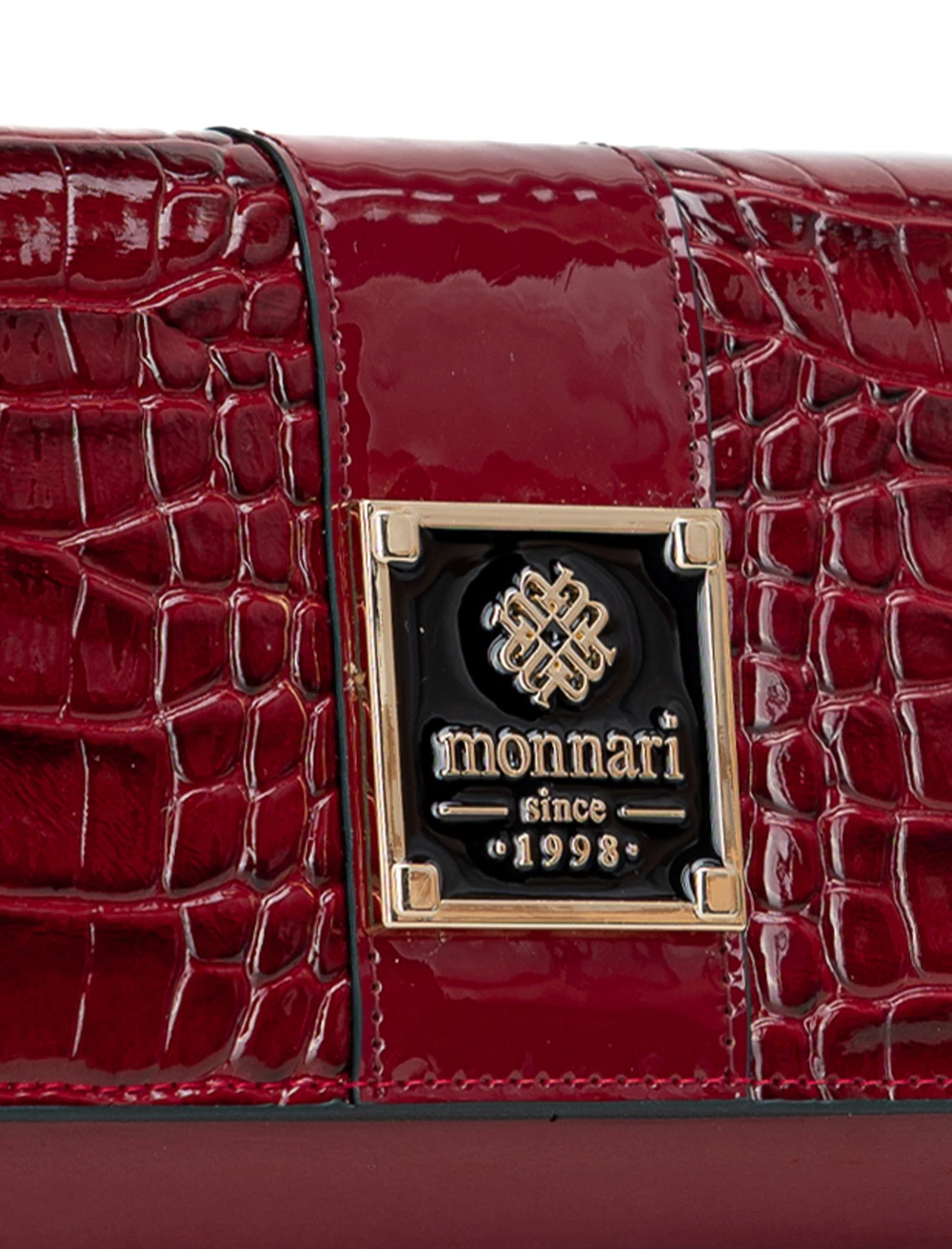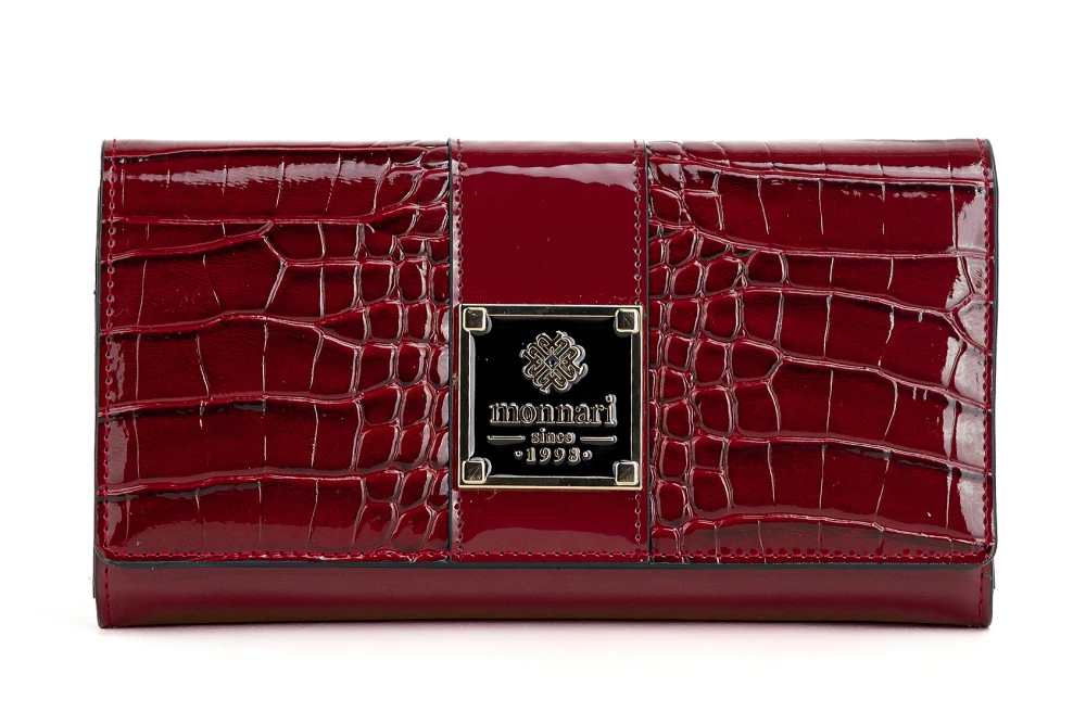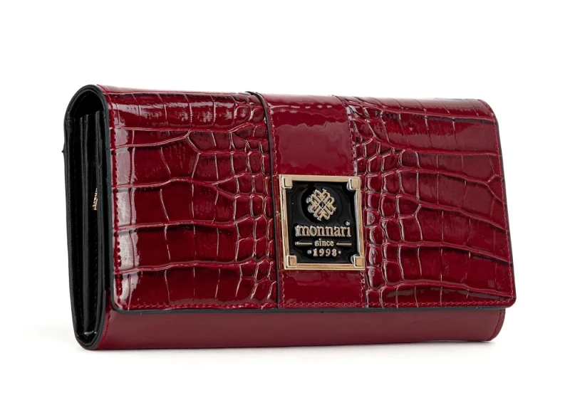 Postaw na portfel damski Monnari ze skóry ekologicznej w czerwonym lakierze z motywem krokodyla – modny, wygodny i elegancki, w atrakcyjnej cenie.