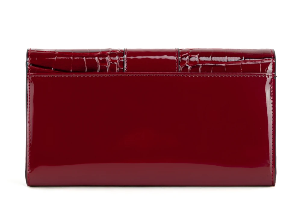 Czerwony lakierowany portfel damski Monnari w motywie skóry krokodyla to elegancki i ponadczasowy wybór.