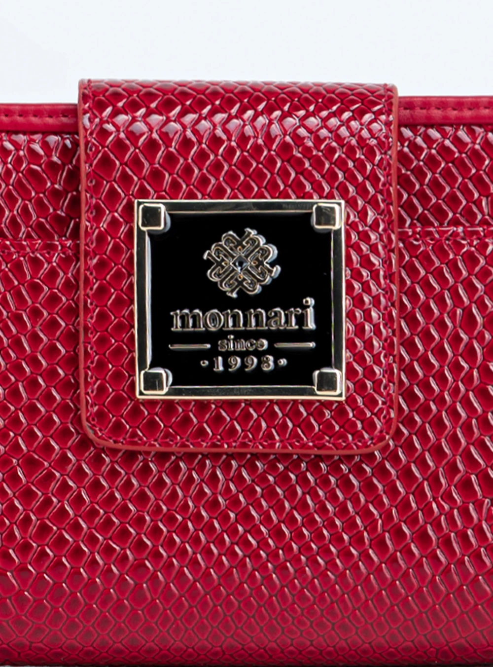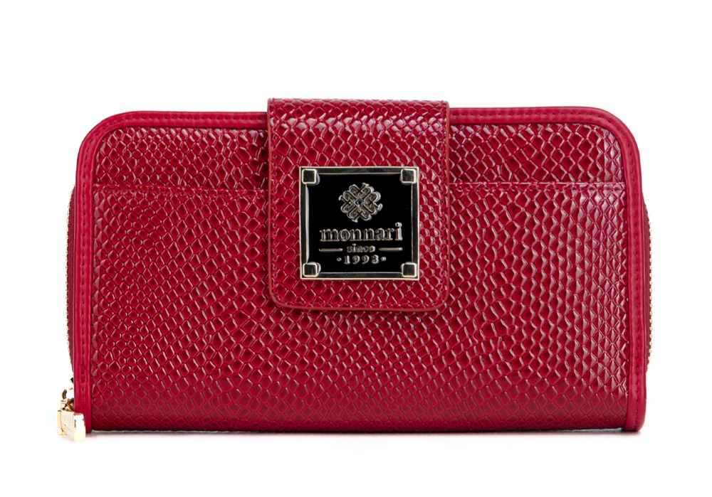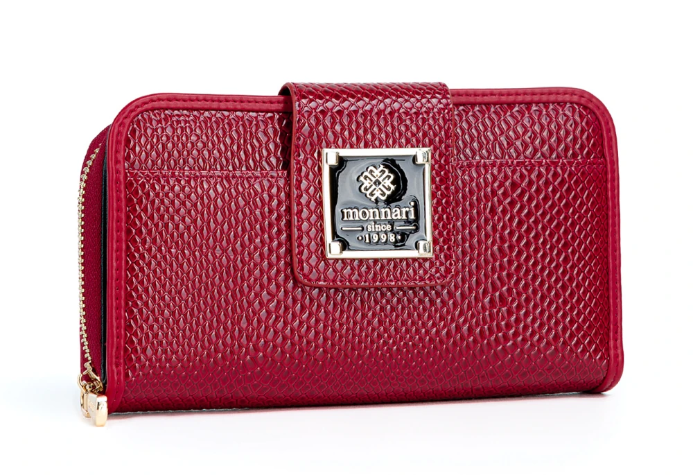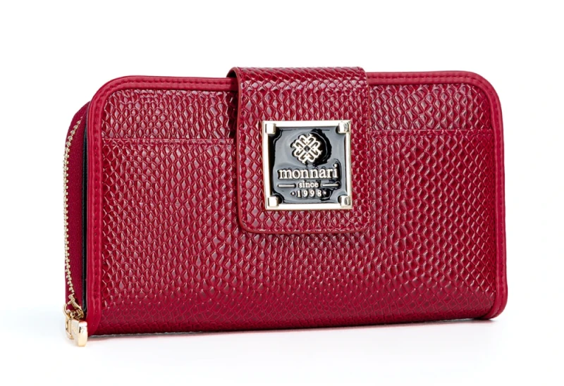 Postaw na elegancki portfel damski Monnari ze skóry ekologicznej w czerwonym lakierze o wzorze węża – modny, praktyczny i dostępny w świetnej cenie.