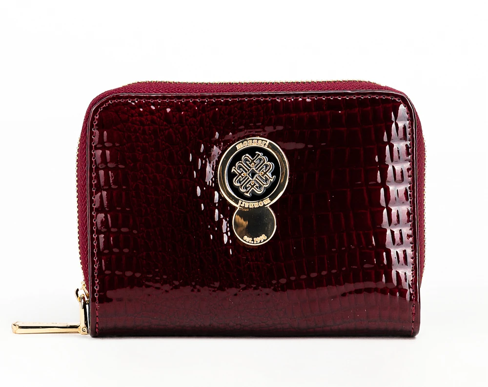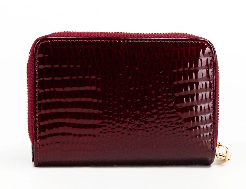 Portfel damski skórzany Monnari burgund lakier wężowa faktura – kompaktowy i elegancki