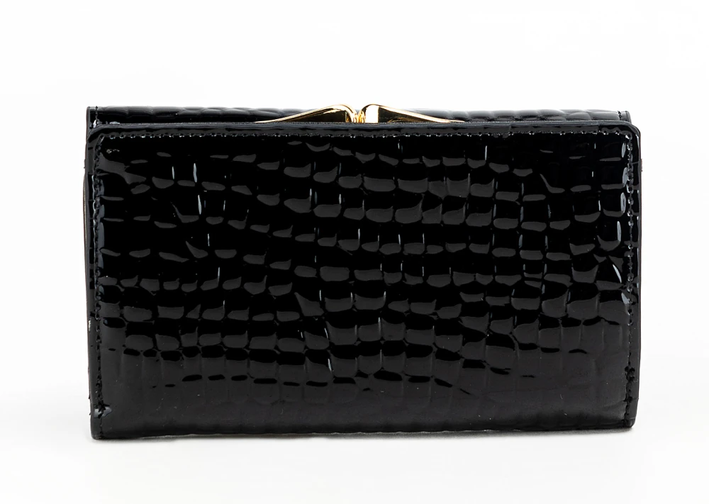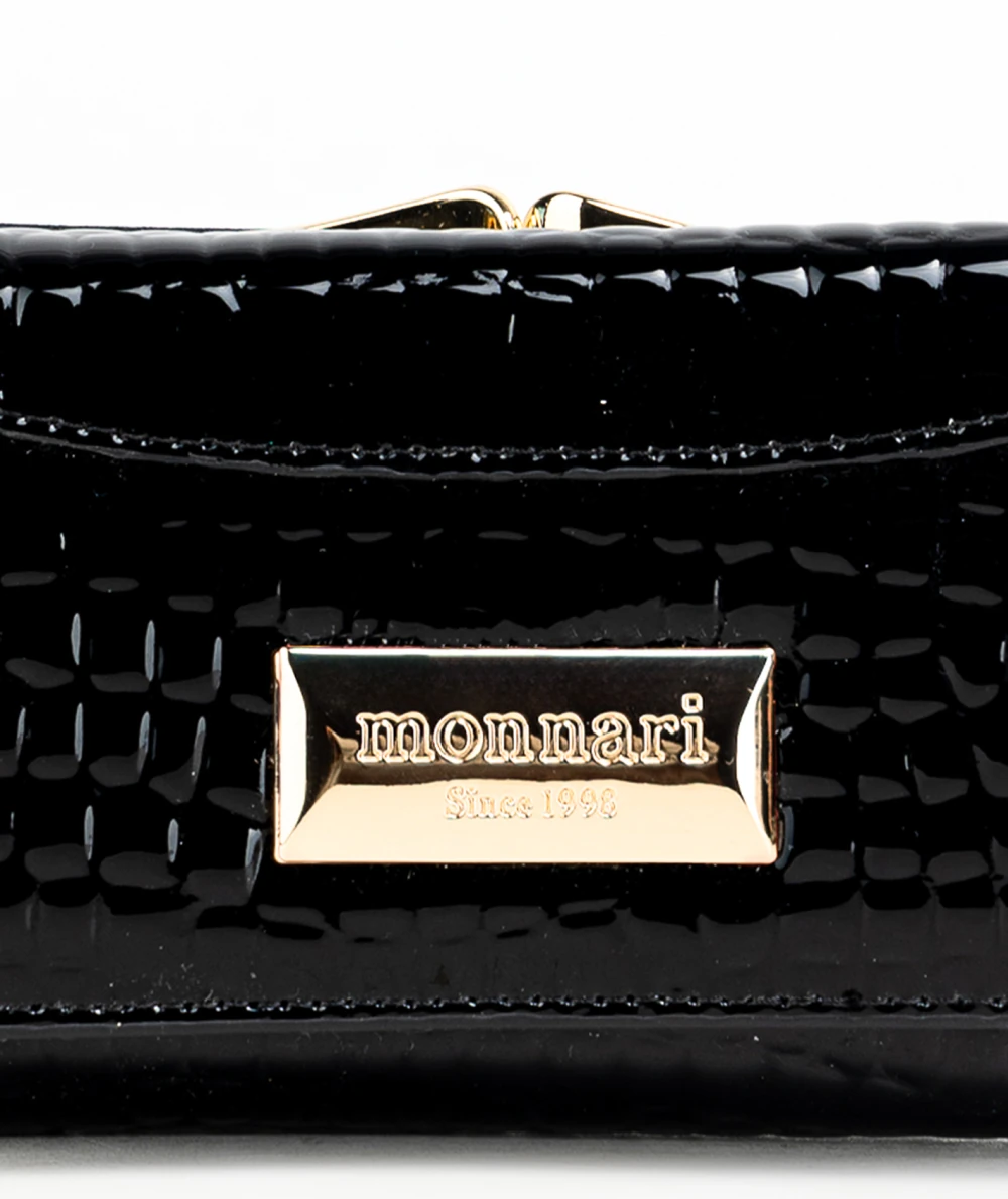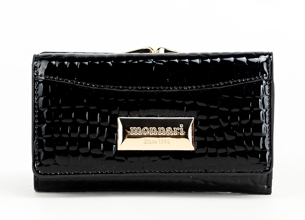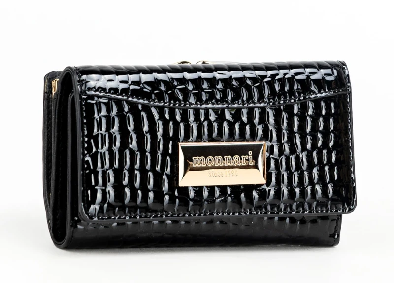 Portfel damski skórzany Monnari czarny lakier wężowa faktura – elegancki i praktyczny