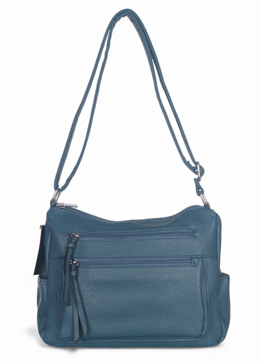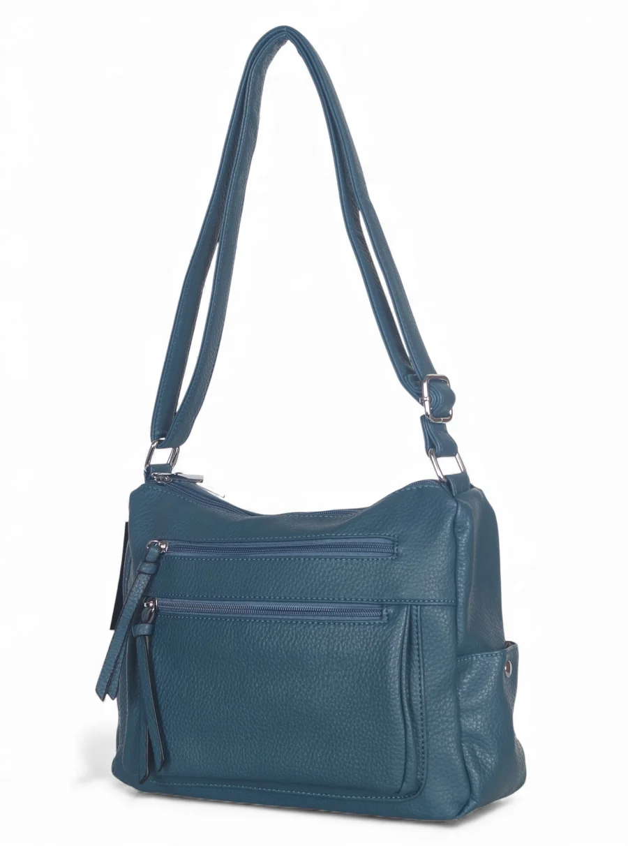 Praktyczna torebka damska na długim pasku 2 komory i 8 kieszonek
