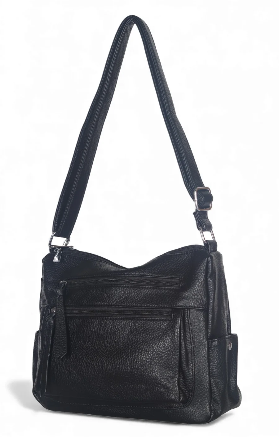 Długi, regulowany pasek pozwala nosić torebkę na ramieniu lub przez ramię.