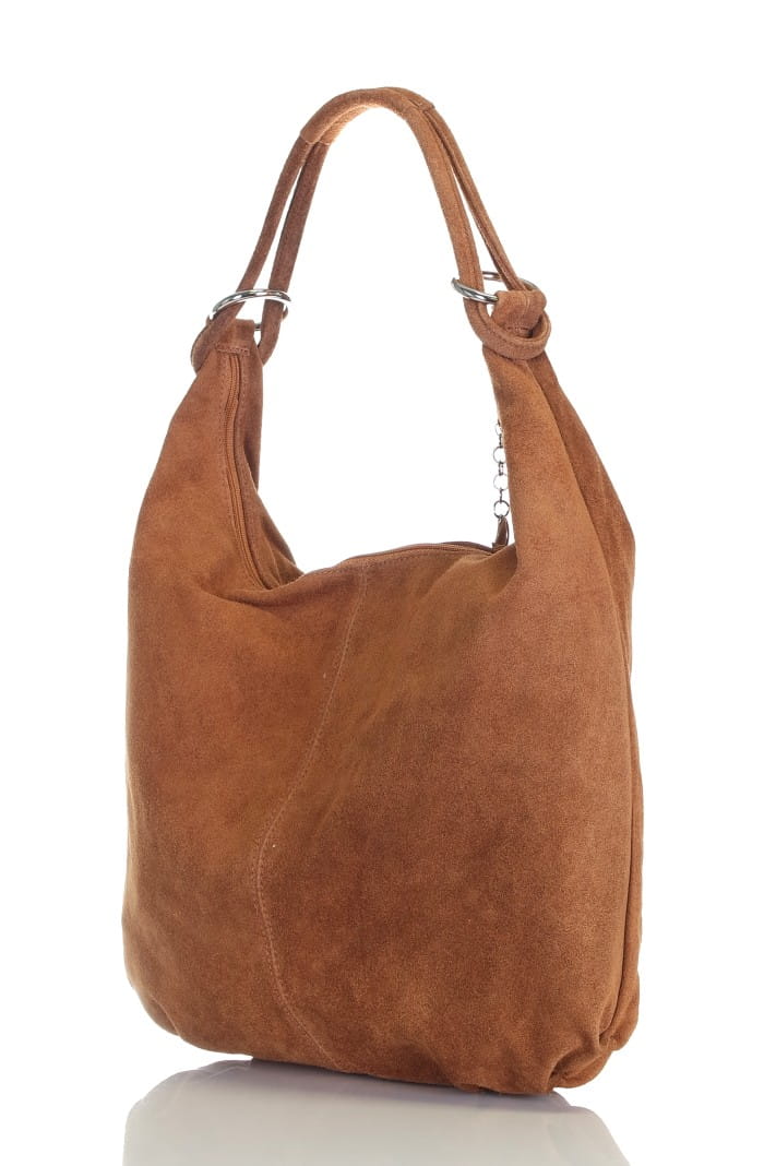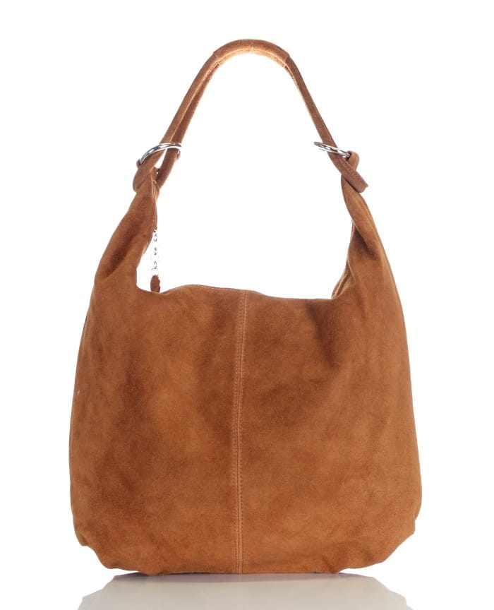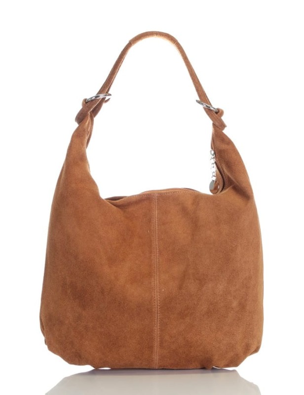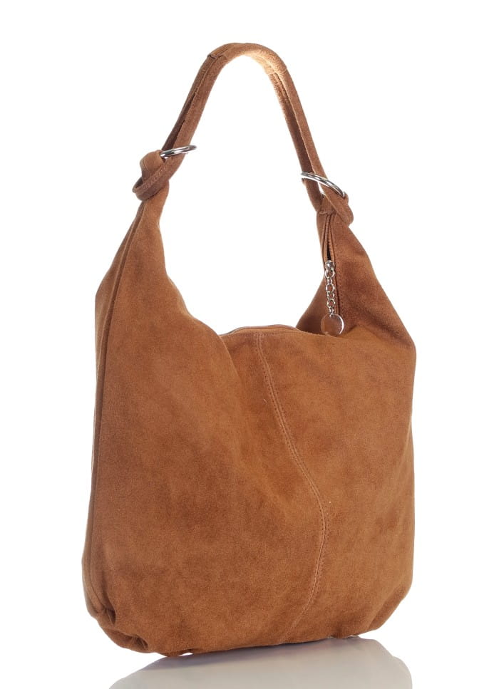 Oryginalna torebka typu worek wykonana w całości z naturalnego włoskiego zamszu. Prosty, klasyczny model. Pojemny i bardzo wygodny w codziennym użytkowaniu, bez problemu mieści dokumenty formatu A4. Model wykończony mocną podszewką. Wnętrze jest jednokomorowe, z kieszonką na zamek oraz kieszonką na telefon.