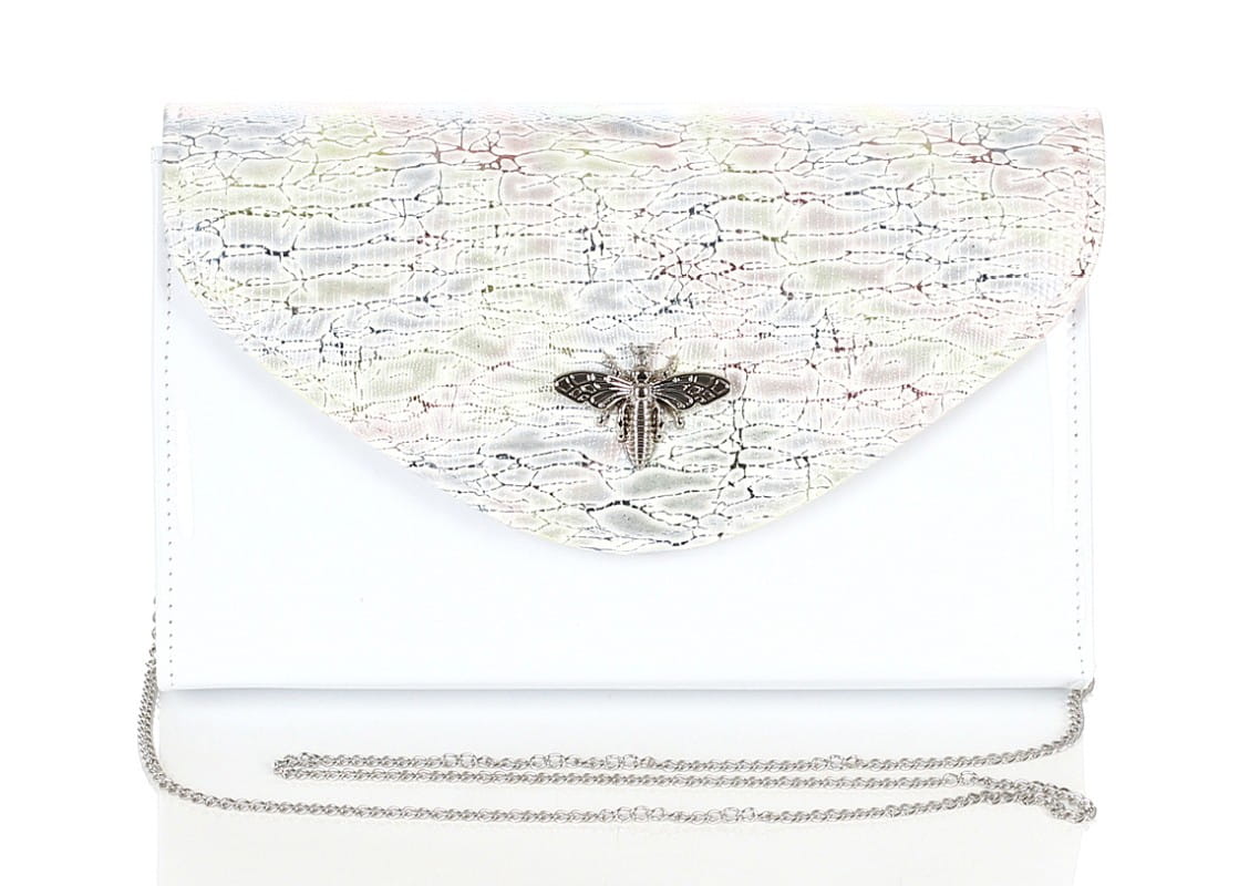 SALVARE Duża torebka kopertówka Biały lakier