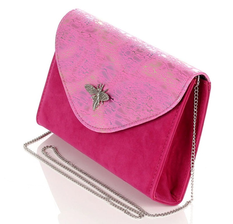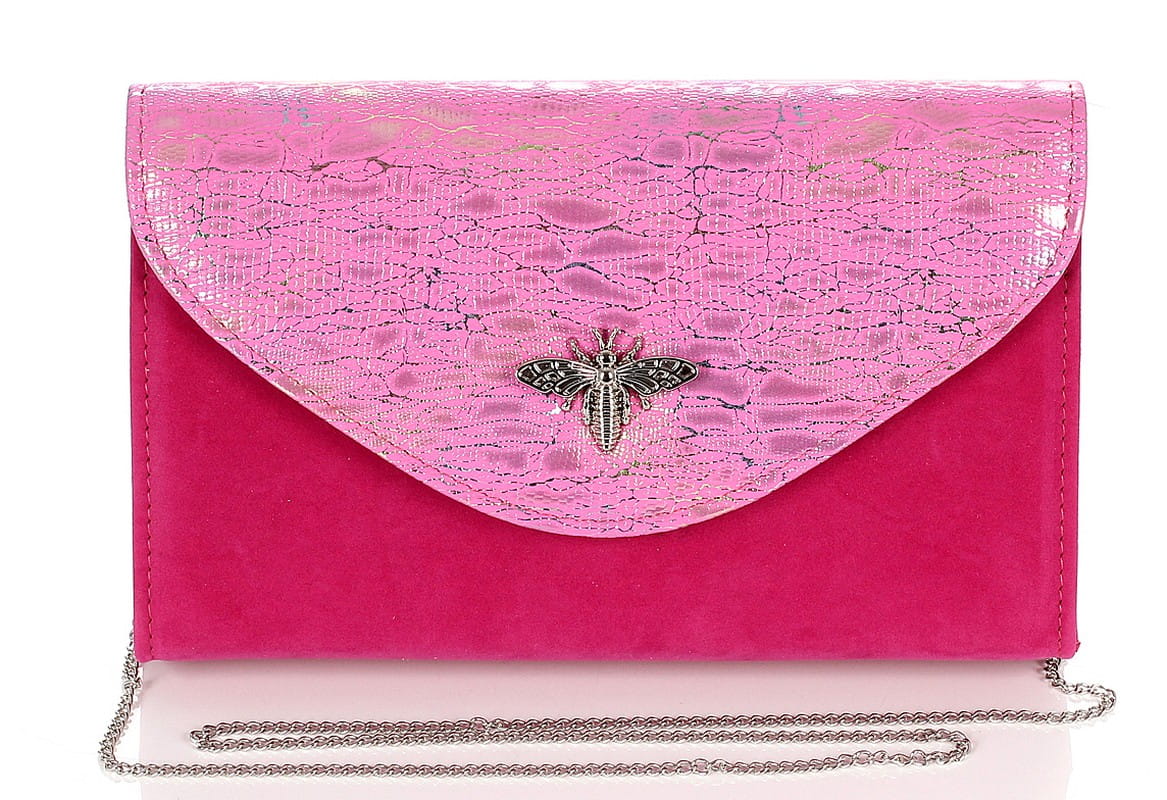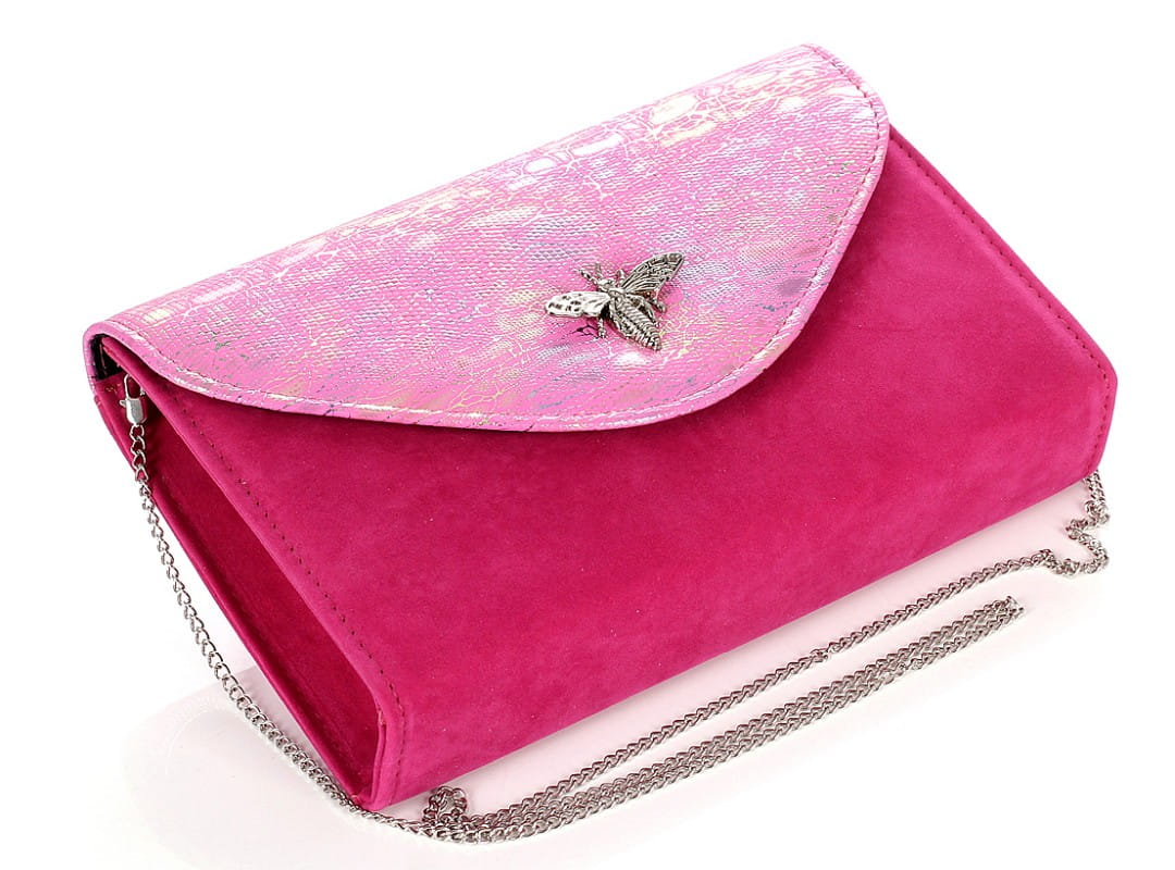 SALVARE Duża torebka kopertówka zamsz Fuksja